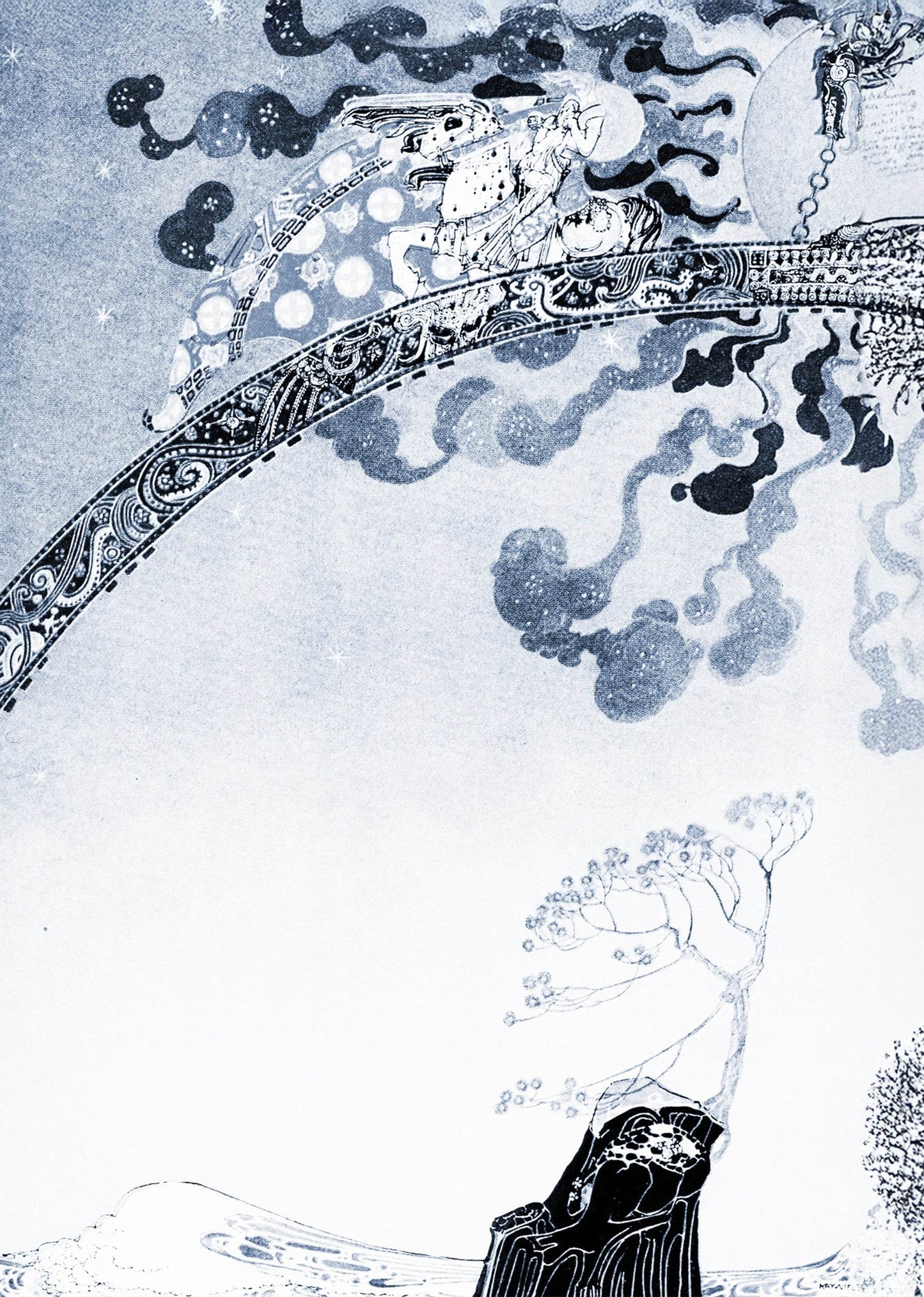 Øst for solen og vest for måne PL 06 er et fantastisk værk af den berømte kunstner Kay Rasmus Nielsen, skabt i 1922. Dette kunstværk indfanger den fortryllende essens af nordisk folklore og blander finurlige elementer med indviklede detaljer.