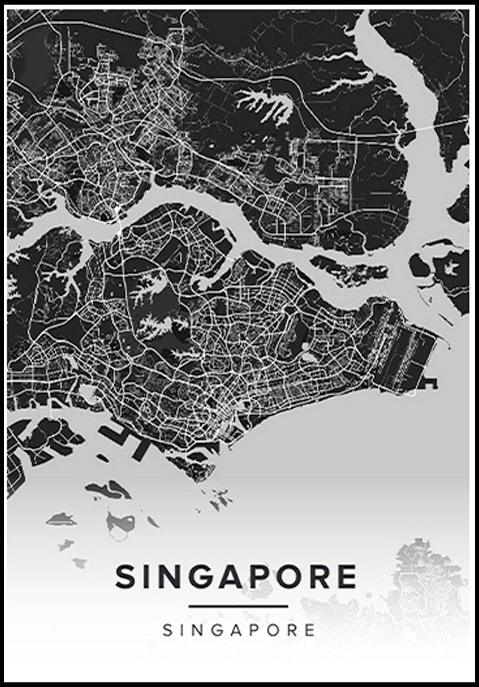 Singapore City Map Poster – Black and White Minimalist Wall Art Print