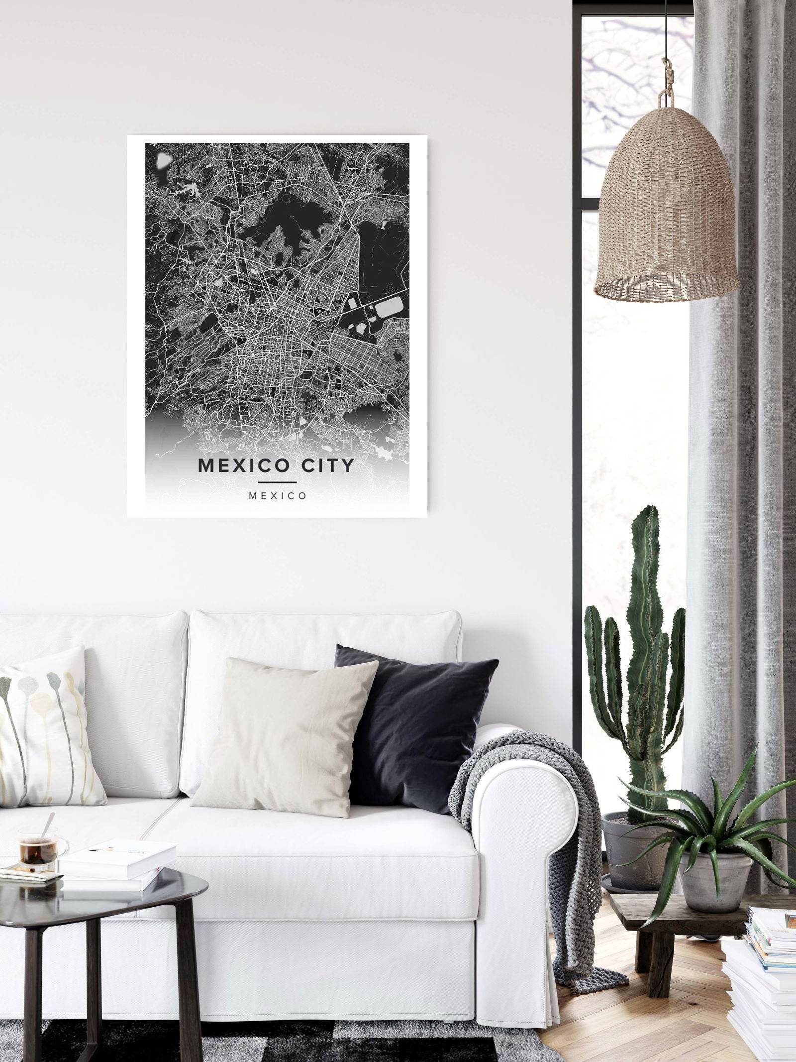 Plakat med et sort/hvidt kort over Mexico City, Mexico.