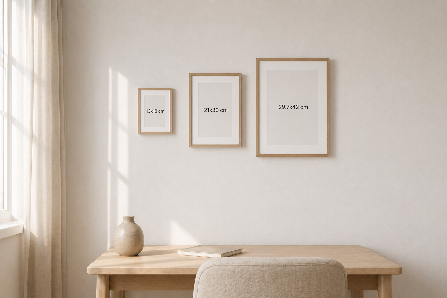 30x40 cm and A3 (29.7 × 42 cm / 11.7 × 16.5 in) – A balanced mid-size option for living rooms and bedrooms.