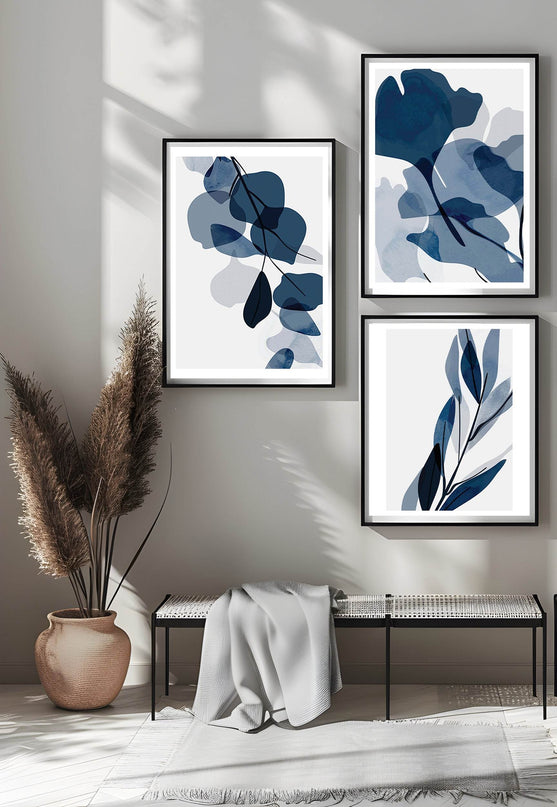 Abstract Blue Watercolour Leaves Posters Trio Pack -