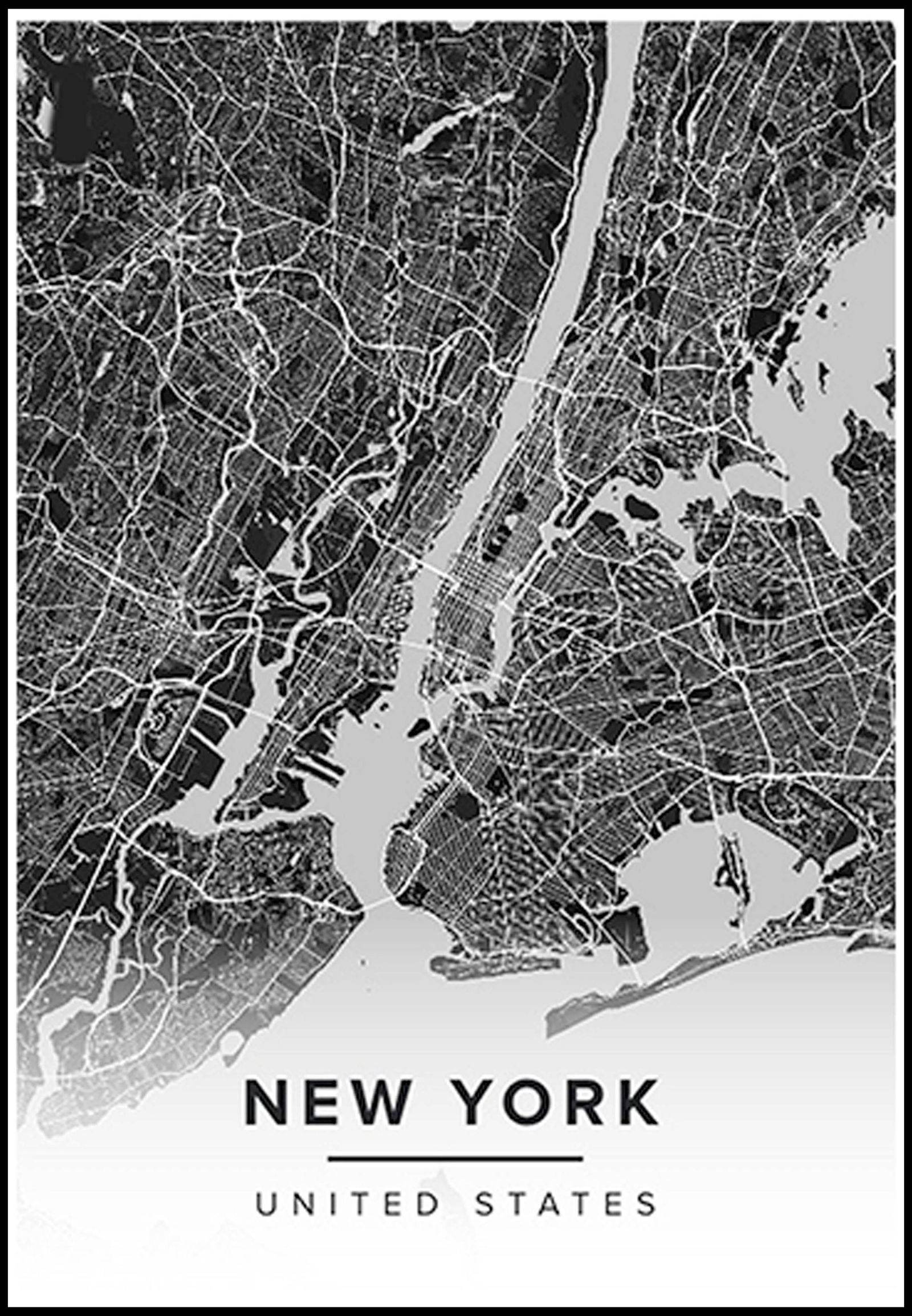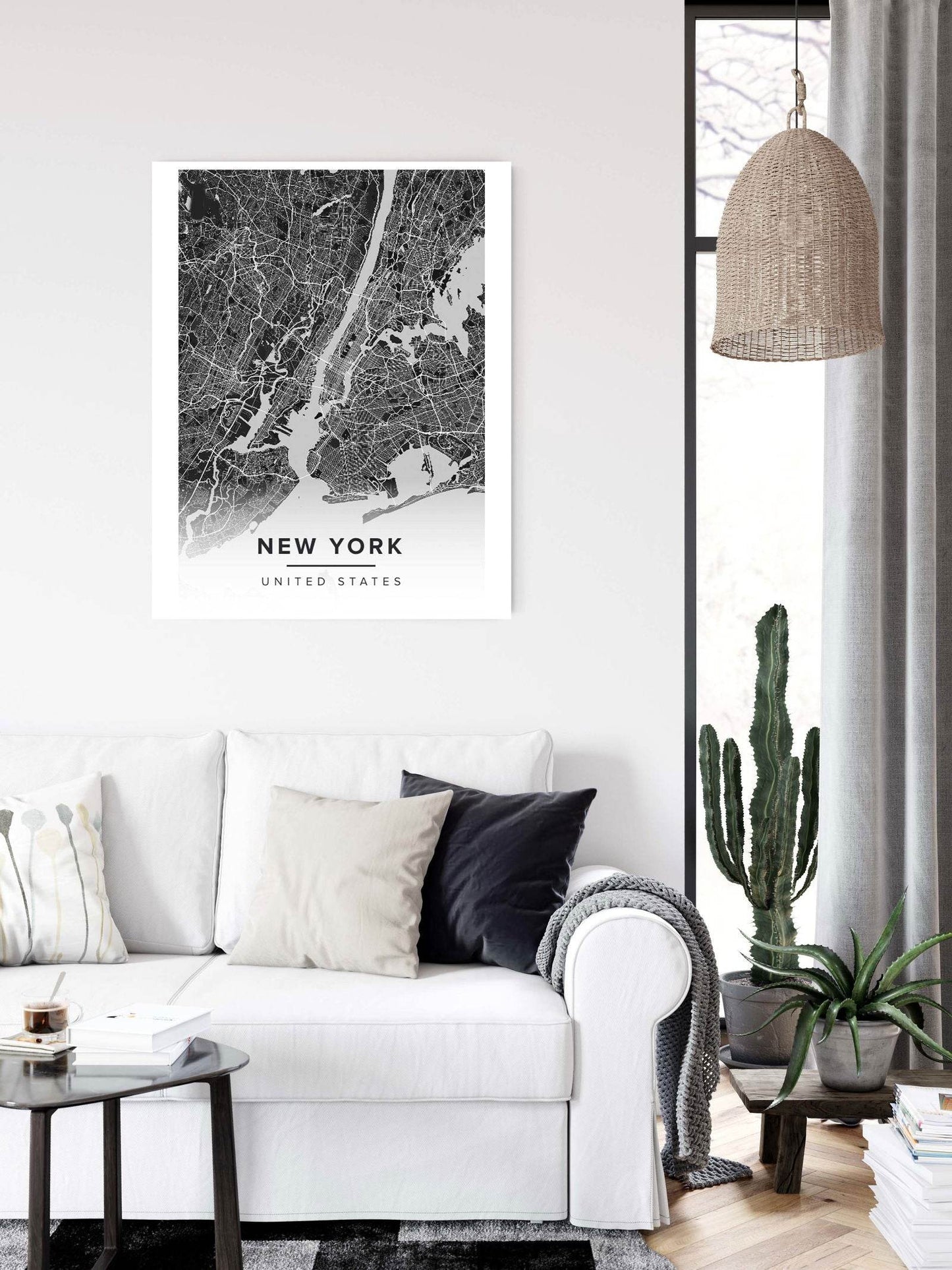 New York City Map Poster – Black and White Minimalist Wall Art Print