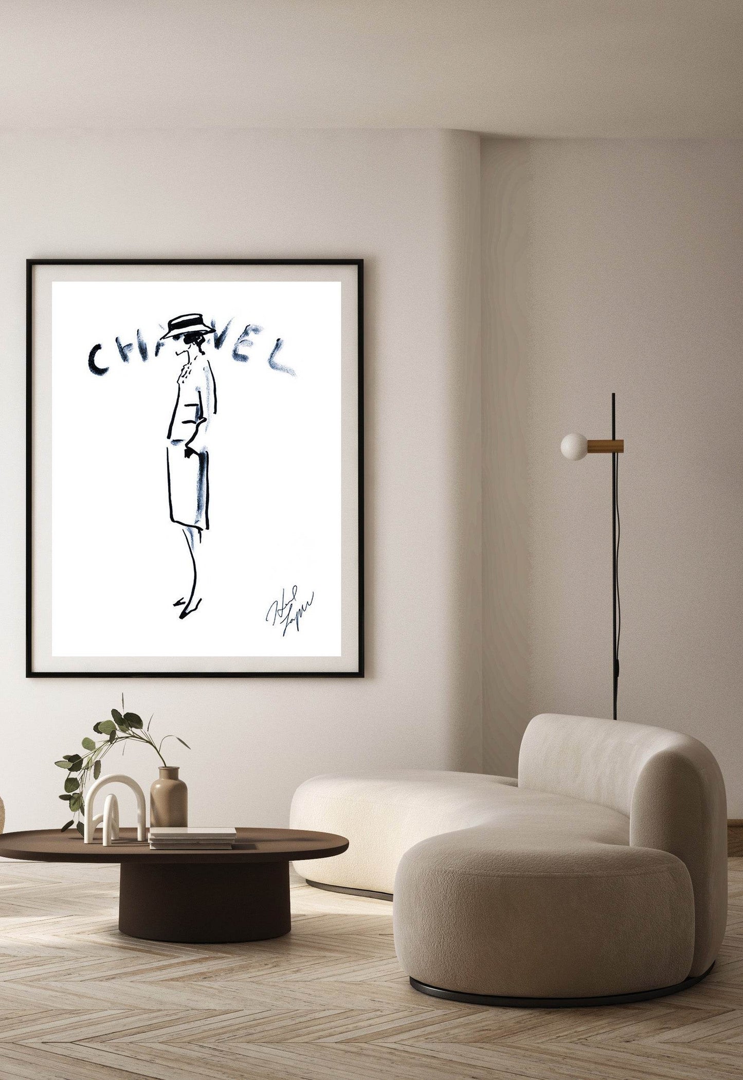 Featuring delicate lines and intricate details, the sketch showcases Chanel's signature style, making it a perfect addition to any art collection or fashion enthusiast's space. The vintage aesthetic adds a touch of nostalgia, celebrating the legacy of one of the most influential figures in fashion history.