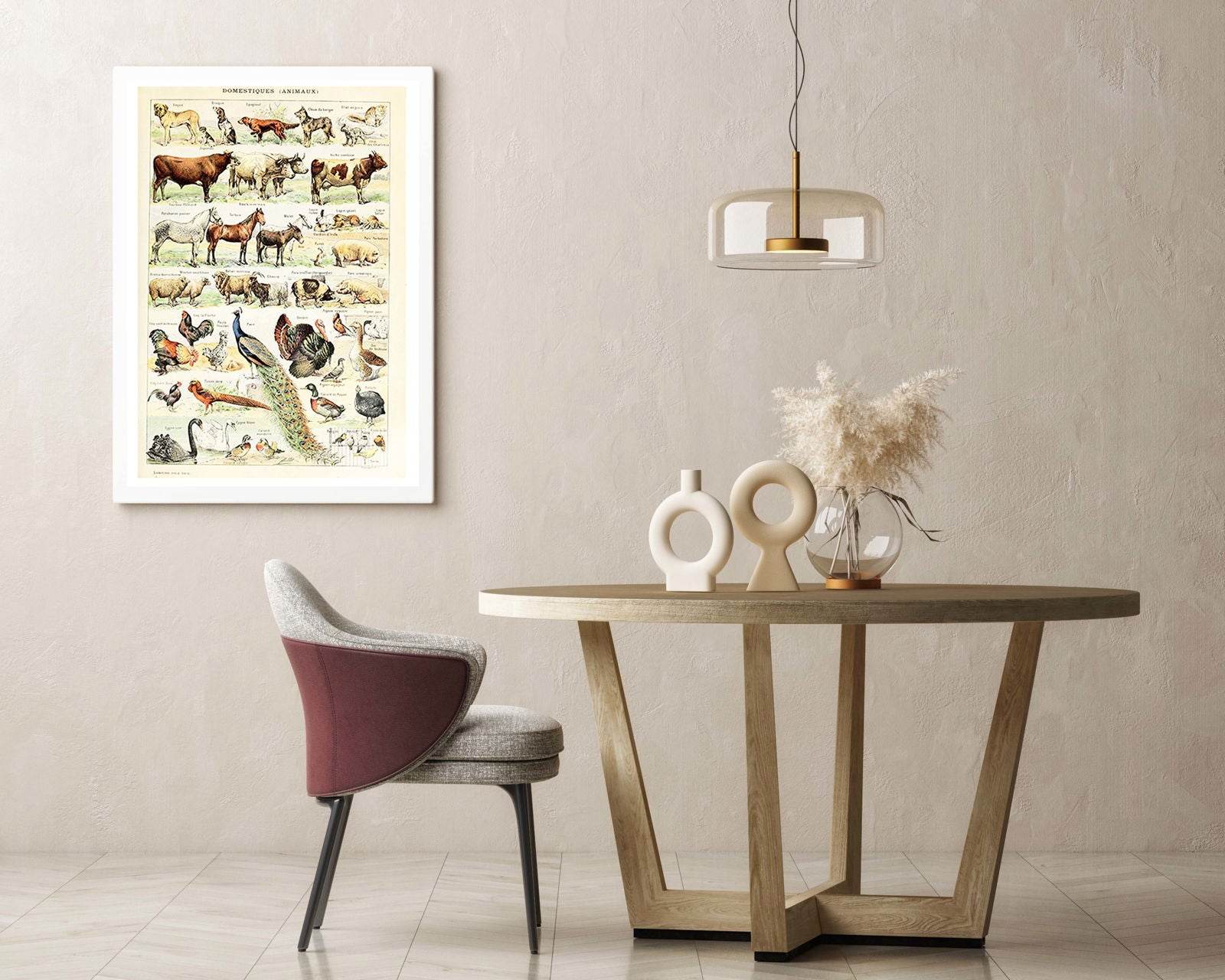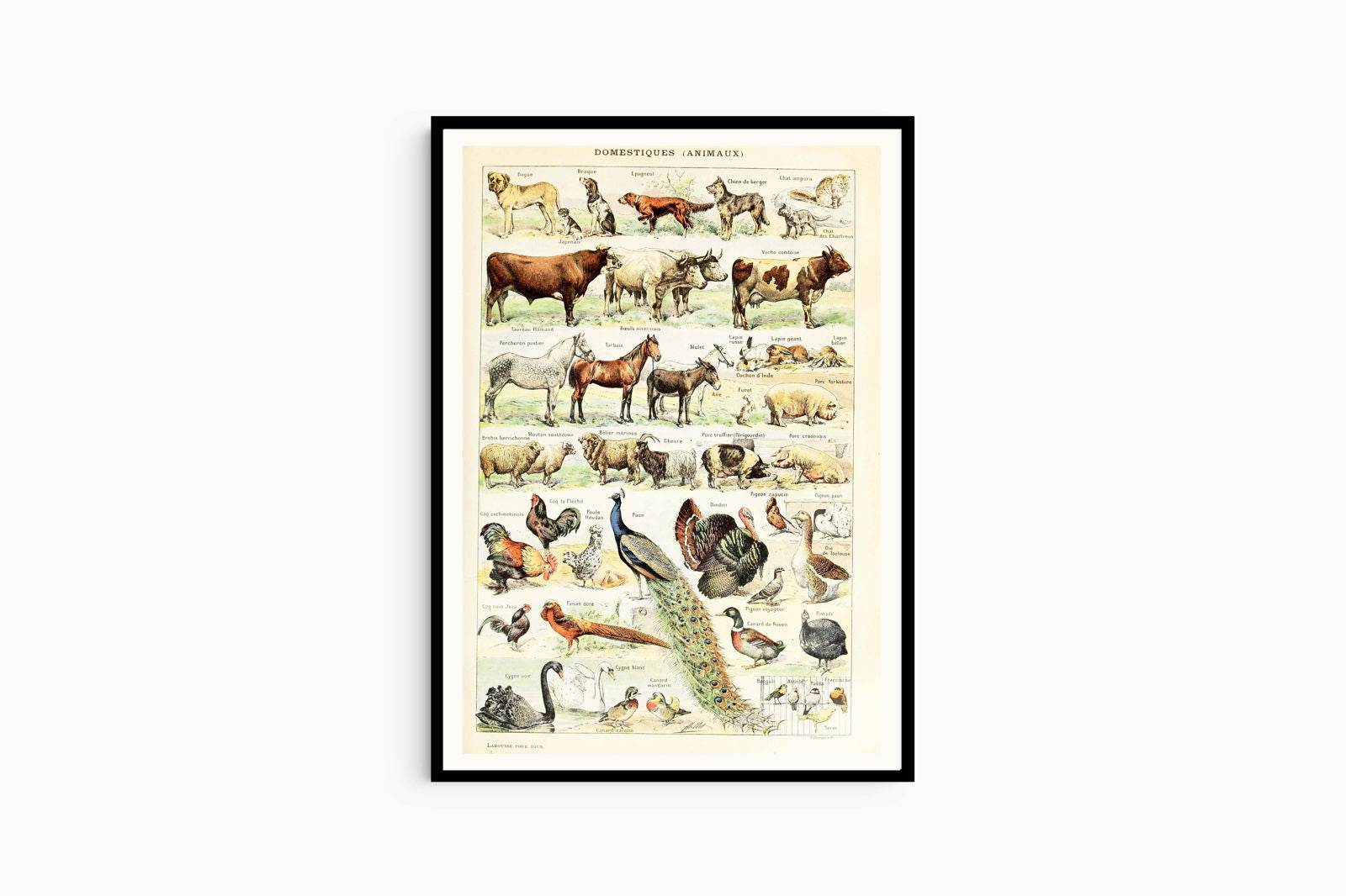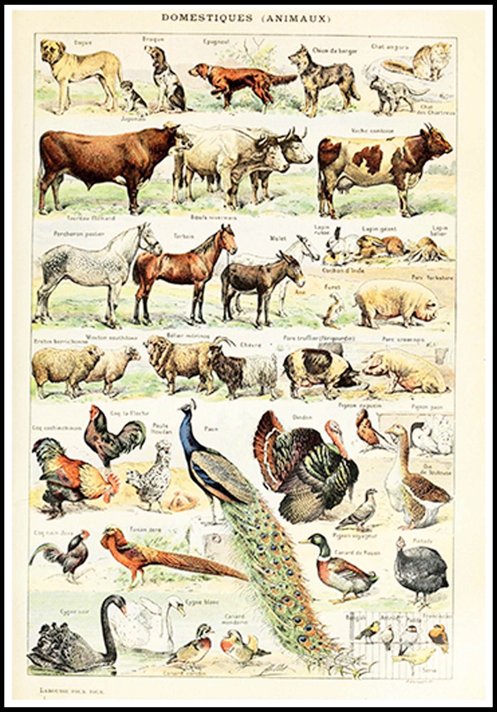 Affiche vintage Domestiques Animaux d'Adolphe Millot' Illustrations pour Le Larousse pour tous, 1907-1910.
