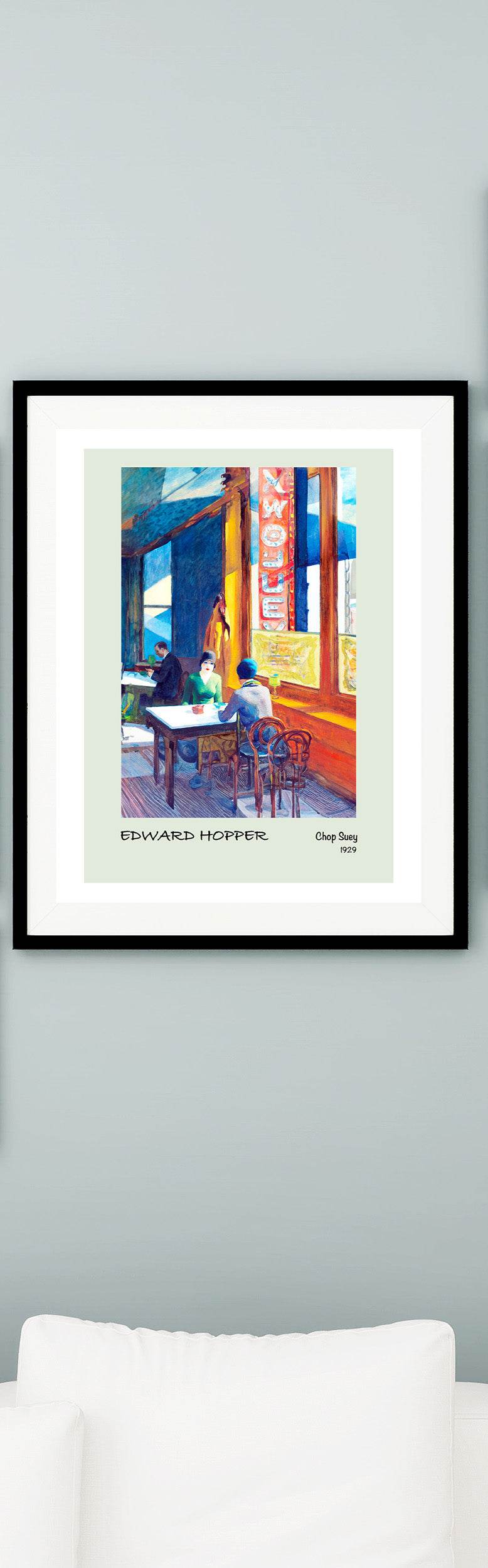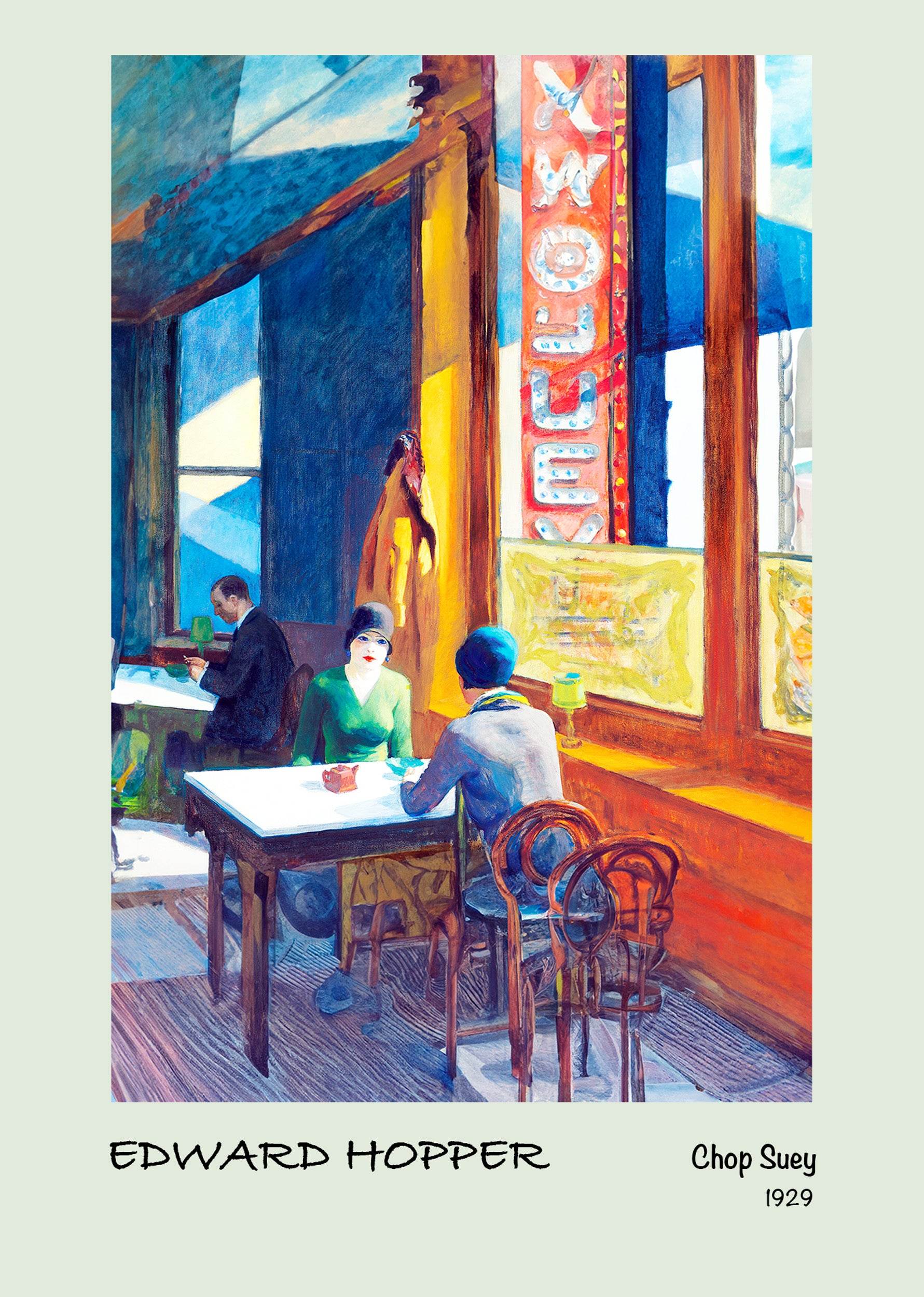 Inspirez-vous de l'atmosphère emblématique du Chop Suey d'Edward Hopper grâce à cette saisissante reproduction d'art. Capturant un instant dans un café des années 1920, la peinture de Hopper mêle couleurs vives et tension paisible, évoquant les thèmes de la solitude urbaine et des liens fugaces. Pièce intemporelle pour les amateurs de réalisme américain et de scènes invitant à la contemplation, cette reproduction apporte caractère et profondeur à tout espace de vie.