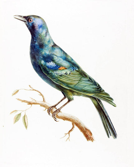 L'Étourneau d'Afrique est une œuvre remarquable inspirée des œuvres de François Levaillant, naturaliste réputé du XVIIIe siècle. Cette œuvre d'art exquise capture l'essence même de l'étourneau africain, mettant en valeur ses couleurs vibrantes et ses détails complexes.