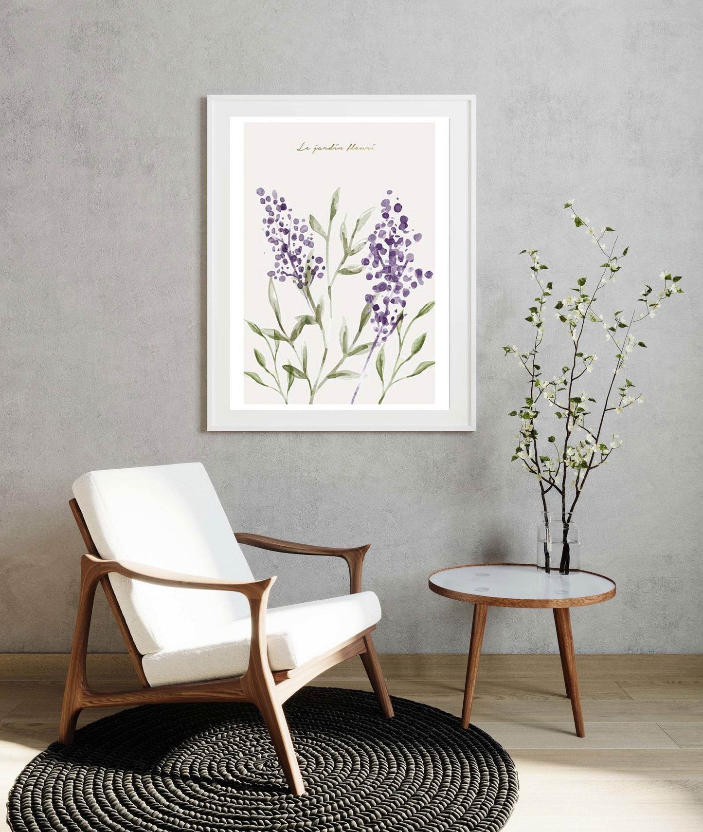 Les belles fleurs de lavande du printemps sont mises en valeur dans cette affiche florale pour une charmante pièce de décoration intérieure. Affichez-la dans votre chambre ou votre salon pour créer une atmosphère relaxante. Dotée d'un magnifique motif aquarelle, cette affiche polyvalente est une pièce sophistiquée qui peut être utilisée dans diverses pièces.