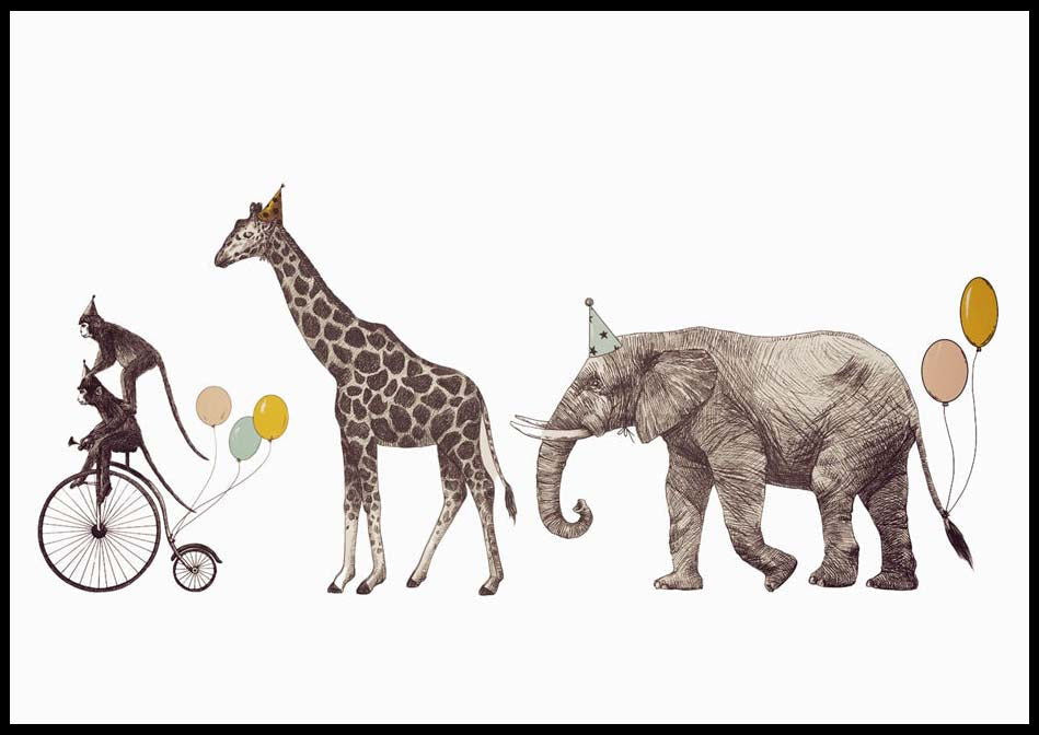 Un superbe cadeau pour les enfants de tous âges, cette affiche est un ajout parfait à toute chambre d'enfant, salle de jeux ou salle de classe. Avec une adorable illustration d'une girafe, d'un éléphant et de singes tenant des ballons. Cette affiche est un excellent moyen d'ajouter de la couleur et de la gaieté à n'importe quelle pièce.