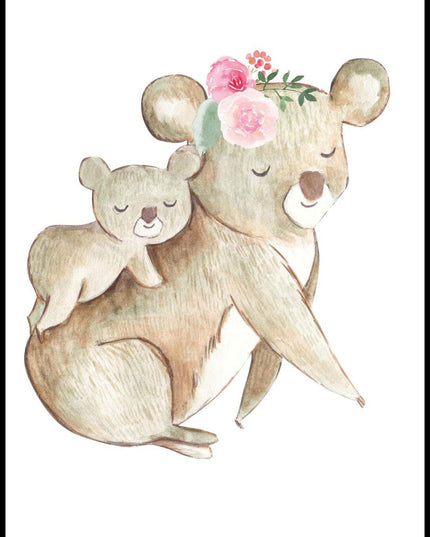 Maman Koala porte son bébé partout où elle va. L'illustration est réalisée dans un style mignon et fantaisiste