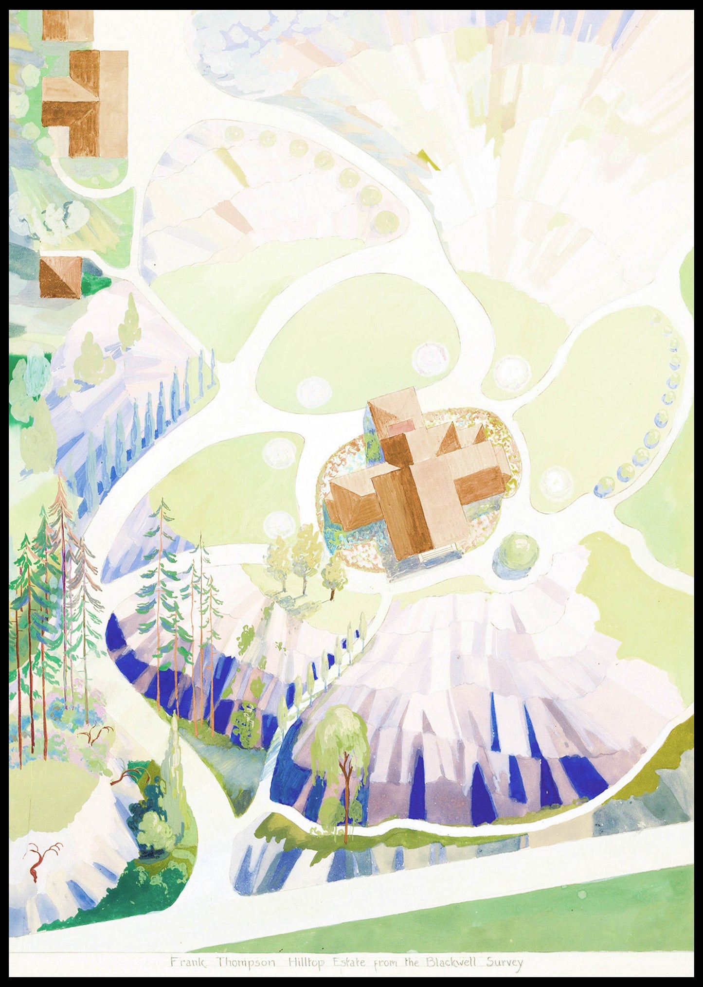 Hilltop Estate – Gilbert Sackerman (1936) | Early 20th-Century Landscape Art Print