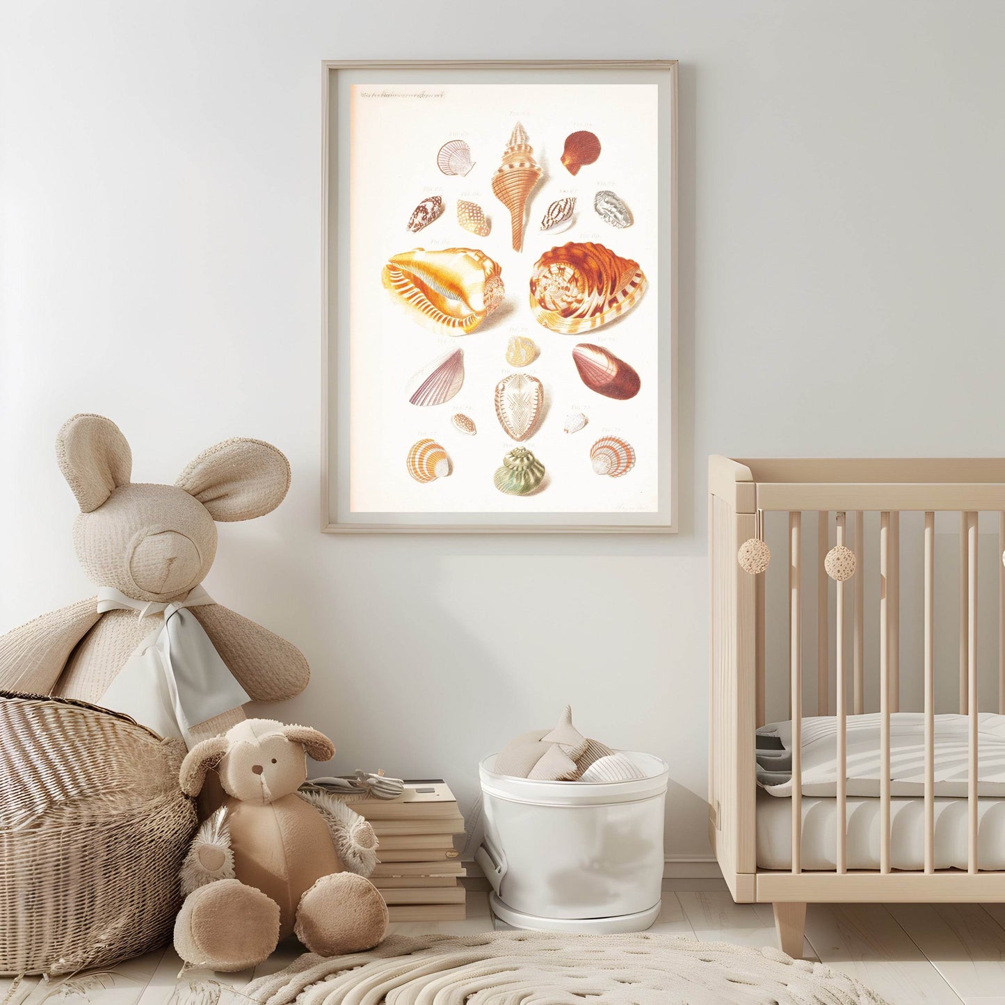 Explore the intricate beauty of natural science with this Illustration Planche Med Konkylier by Franz Michael Regenfus. This historic 19th-century scientific print showcases meticulously detailed shells, highlighting the artistry of early natural history illustration.