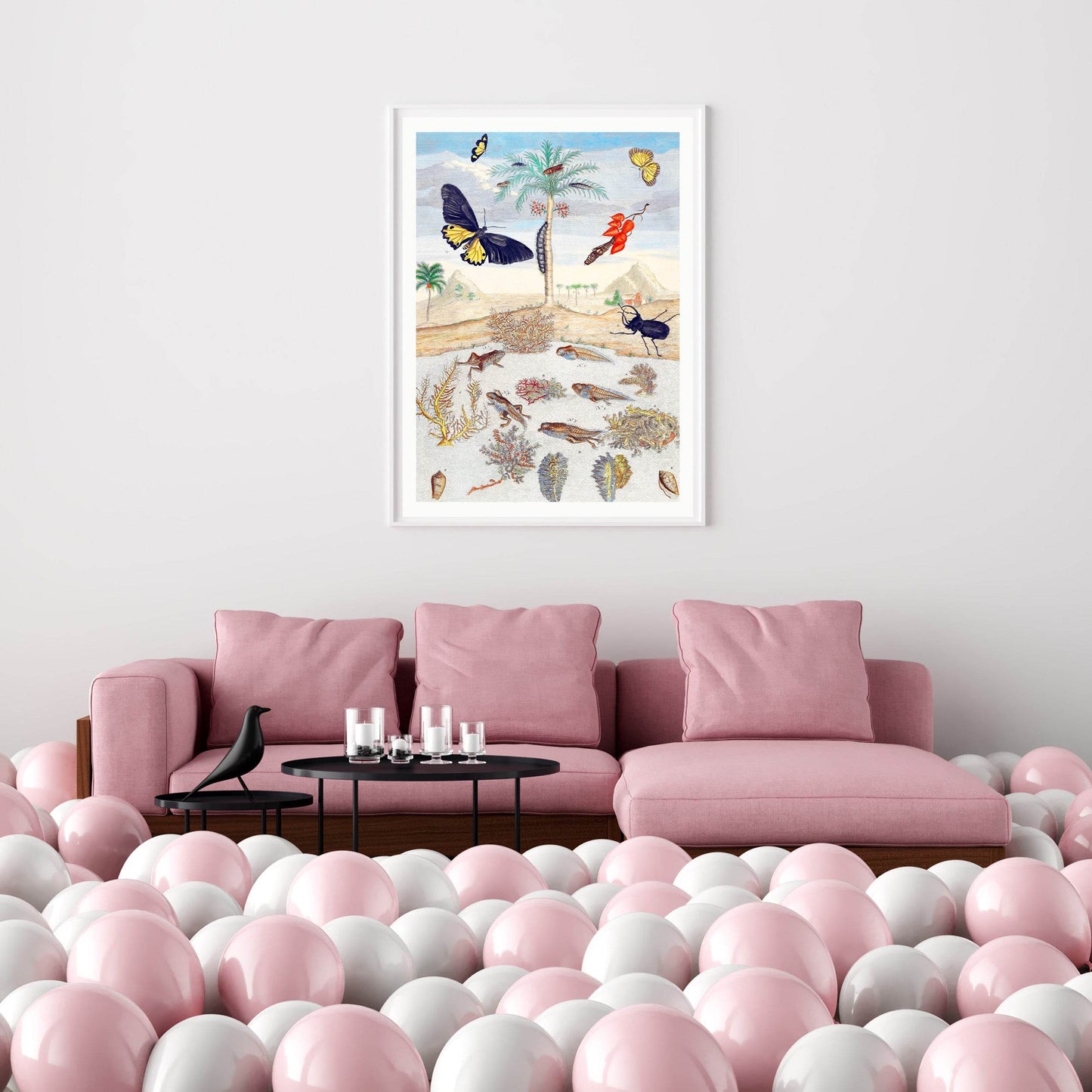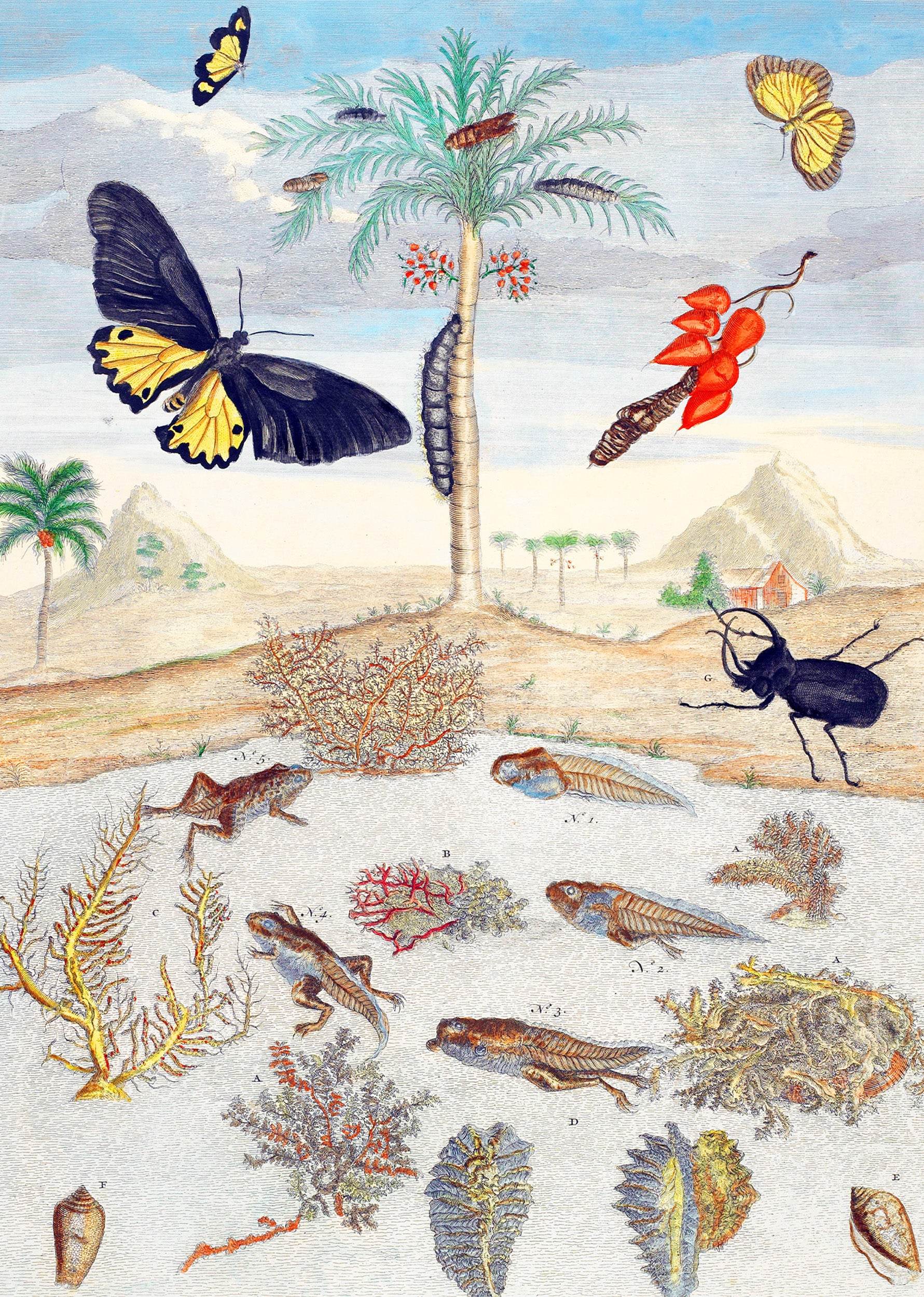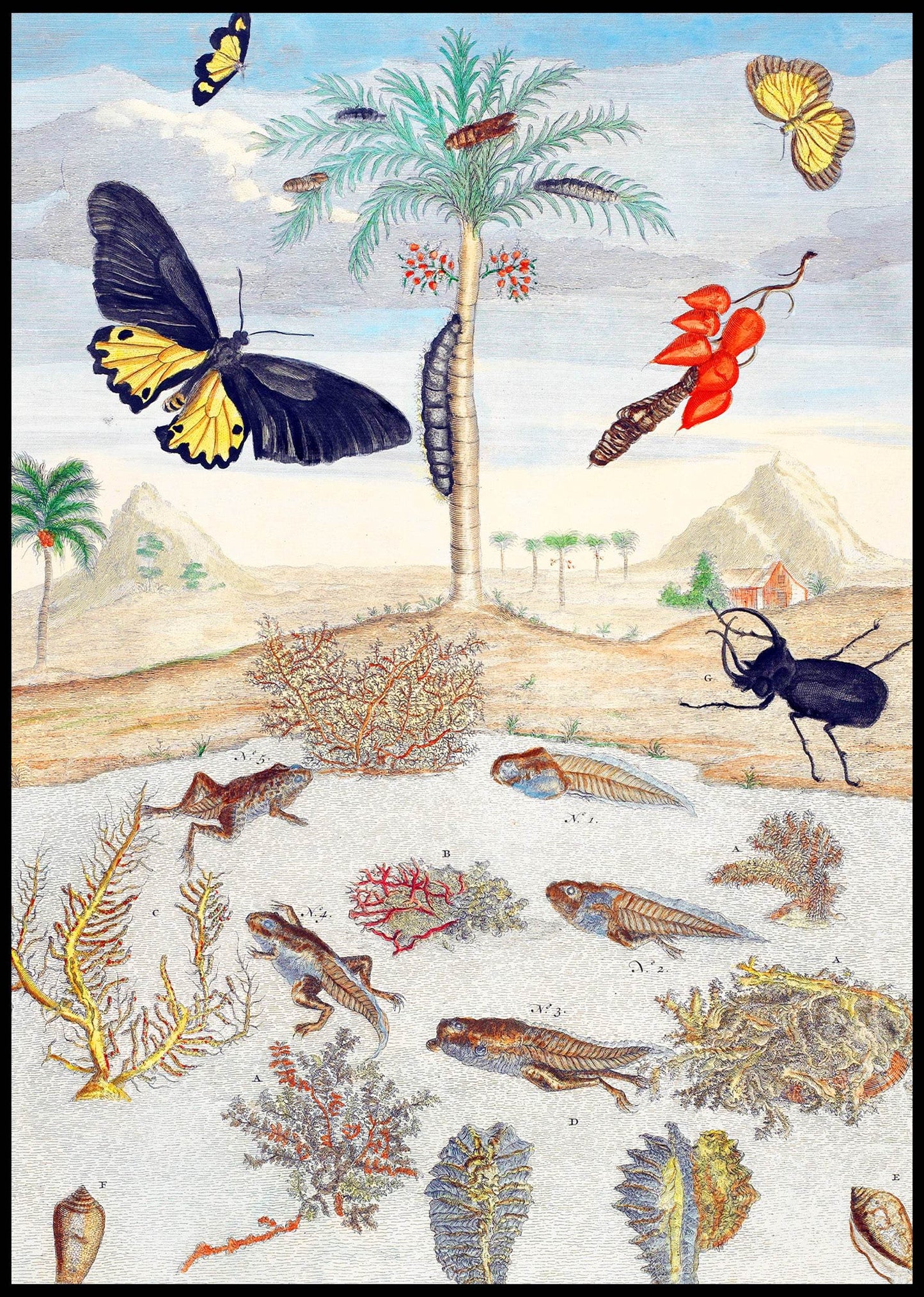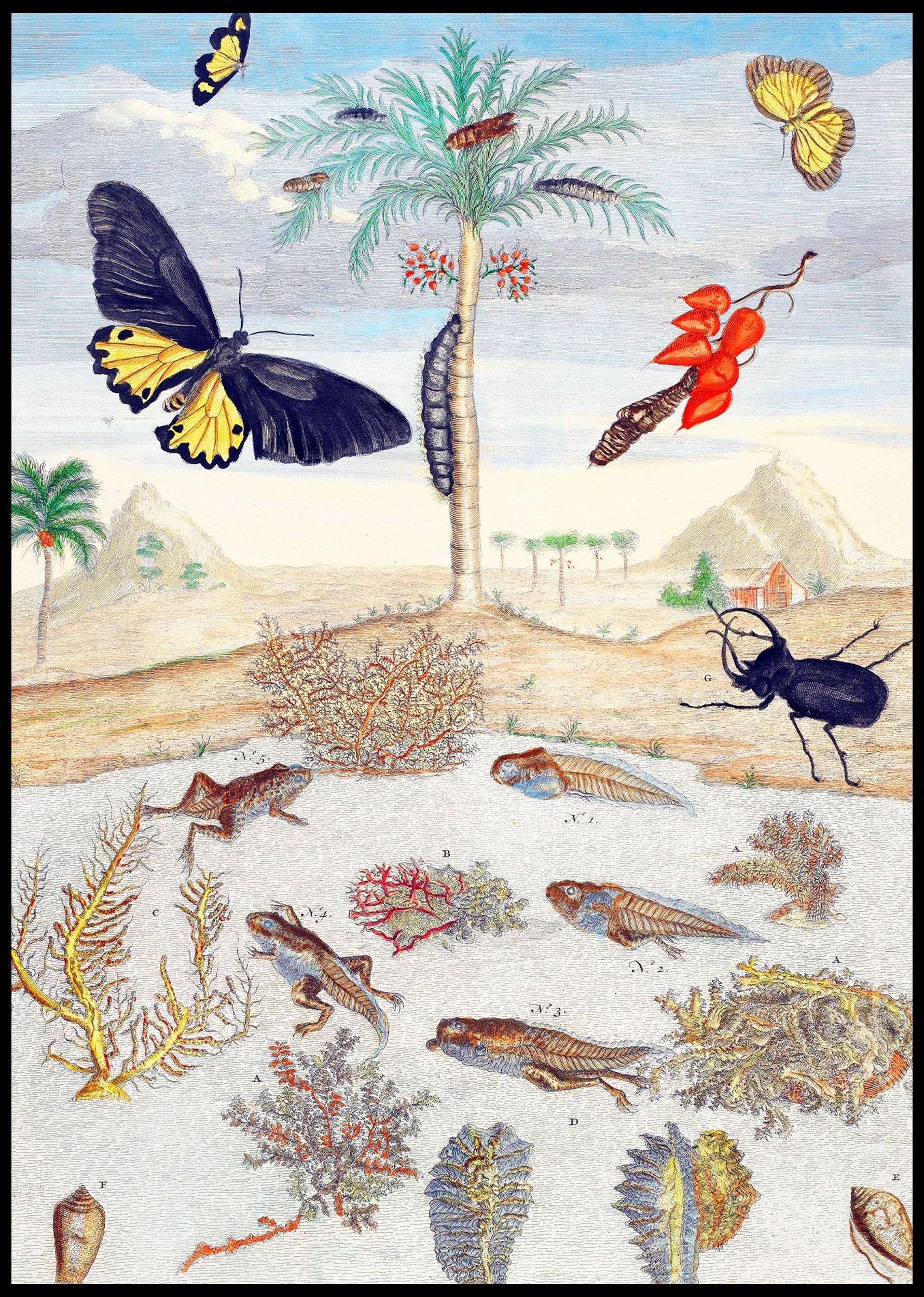 Insects and Fish with Island Background – Maria Sibylla Merian Botanical Art Print