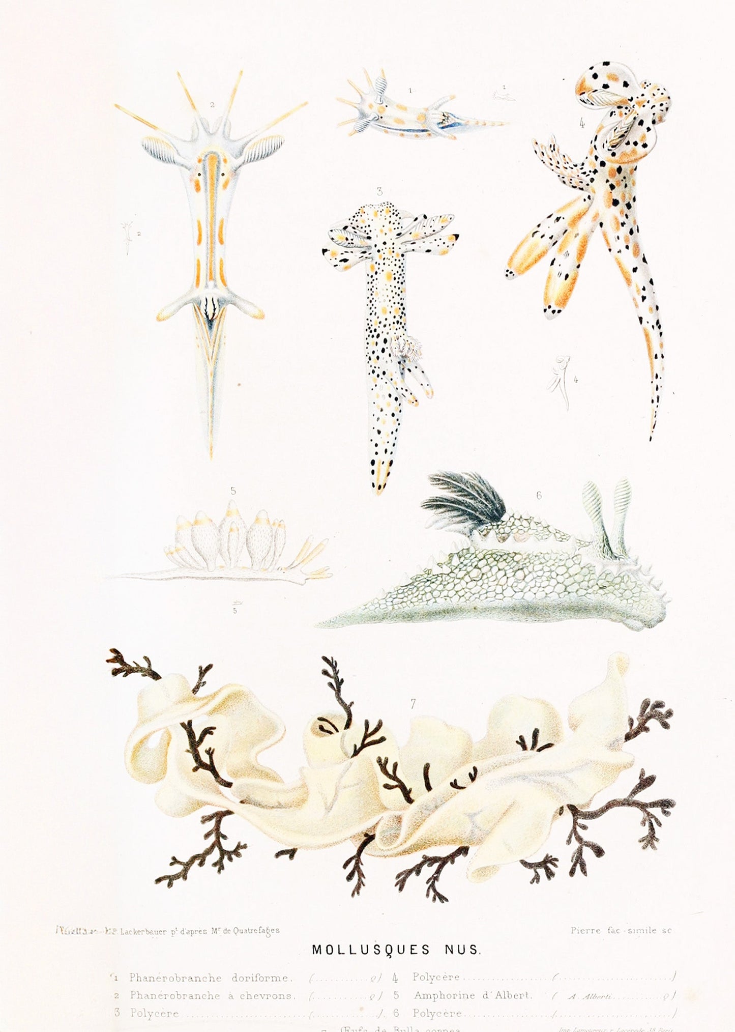 xplore the intricate beauty of marine life with Mollusques Nus II by Alfred Frédol (1866). This detailed natural history illustration showcases the delicate forms of mollusks with scientific precision and artistic elegance.