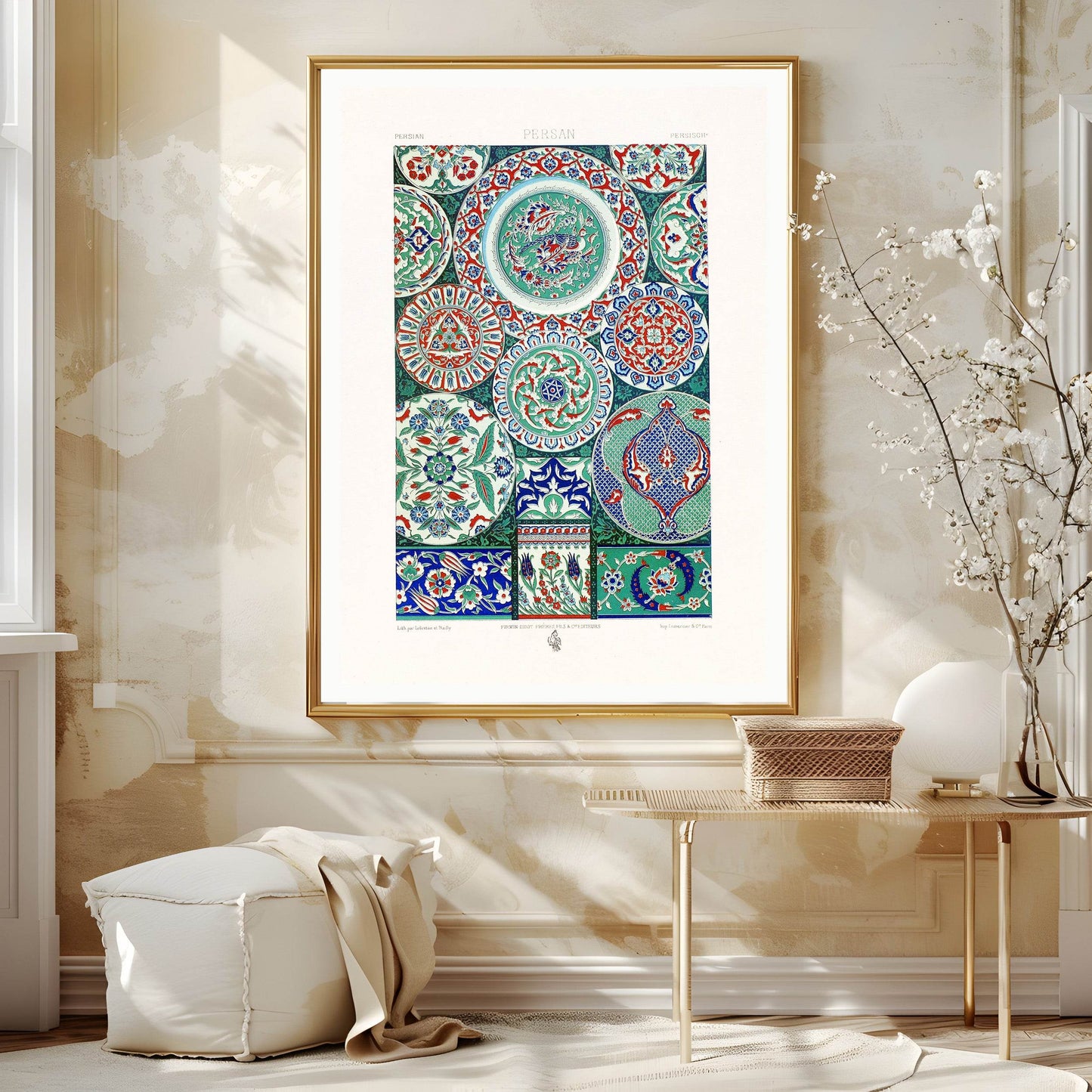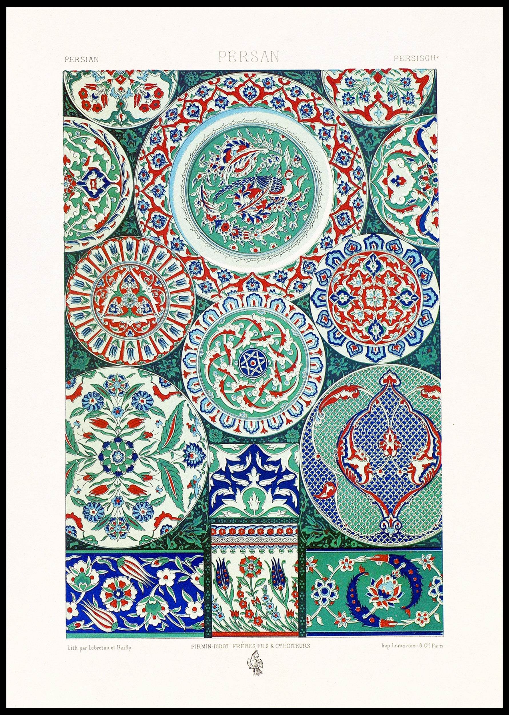 Bring the elegance and cultural richness of 19th-century French historical illustration into your home with “Persan 3” by Auguste Racinet. This evocative composition showcases intricately detailed Persian attire, decorative patterns, and historical textures, reflecting Racinet’s mastery of costume illustration and ethnographic study.