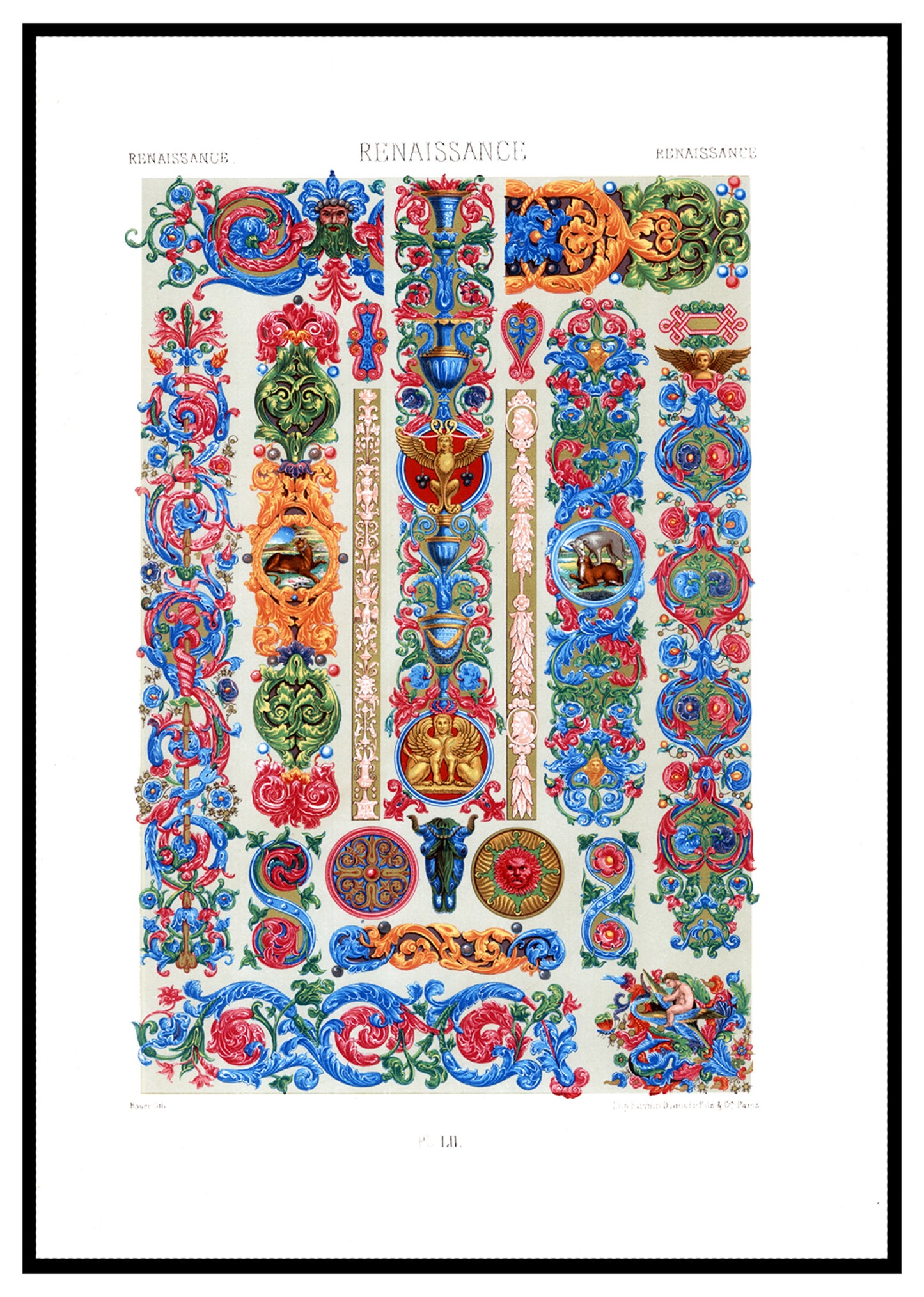 Polychrome Ornament Pl. 52 "Renaissance" by Auguste Racinet – Vintage French Decorative Art Print