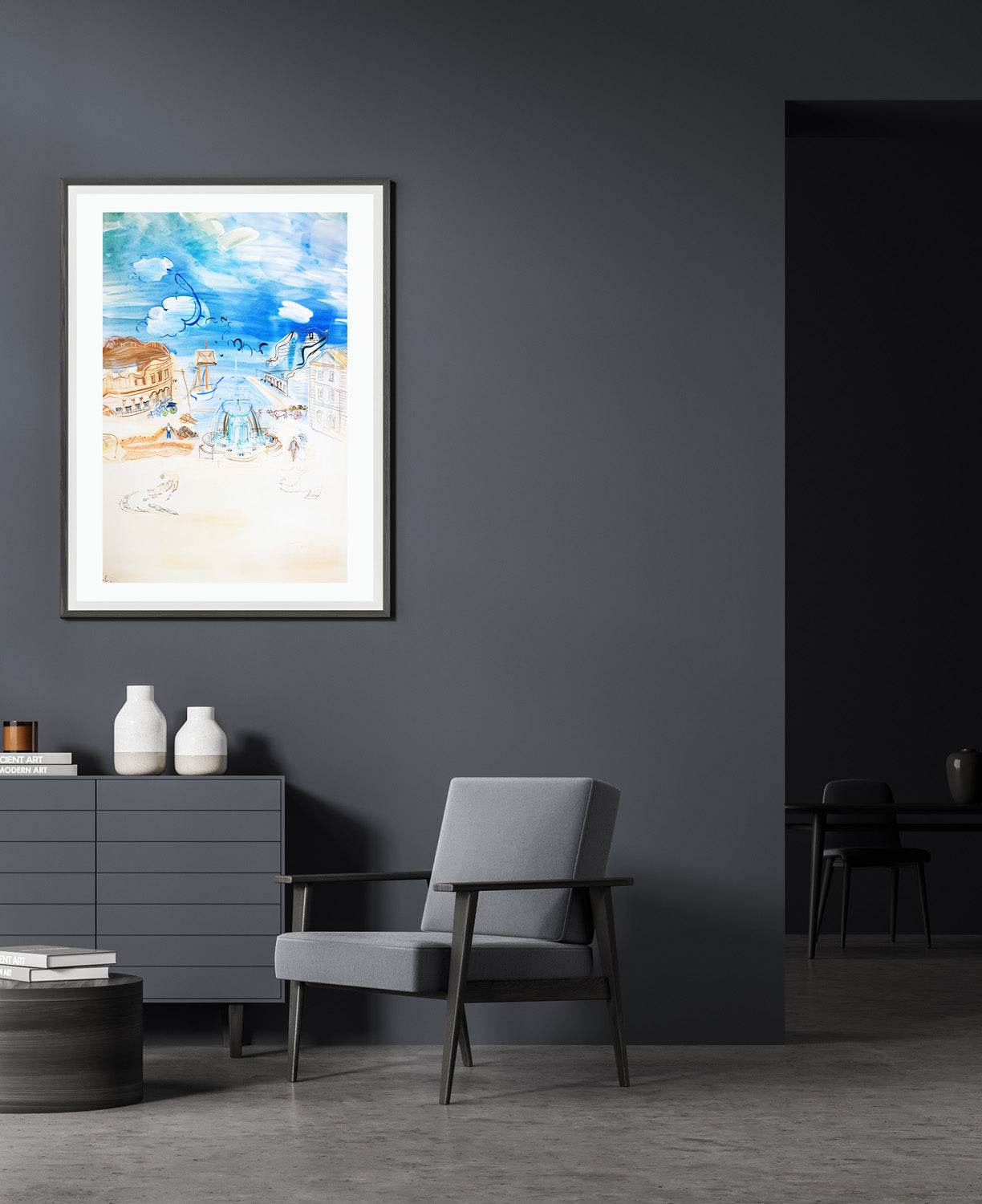 Raoul Dufy, peintre français renommé du mouvement fauviste, utilise des techniques audacieuses pour évoquer des émotions et des paysages vivants. Cette pièce unique est parfaite pour les amateurs d'art et ceux qui souhaitent ajouter une touche de sophistication à leur intérieur.