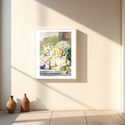 Indulge in the vibrant essence of nature with our exquisite Piece of Fruit collection. Featuring a delightful assortment of melon, pineapple, grapes, peaches, plums, and nuts, this artwork by Paul Theodor Van Brussel captures the beauty of fresh produce in a stunning display.