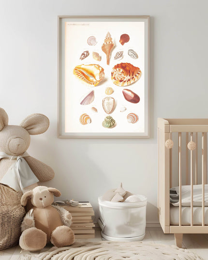 Explore the intricate beauty of natural science with this Illustration Planche Med Konkylier by Franz Michael Regenfus. This historic 19th-century scientific print showcases meticulously detailed shells, highlighting the artistry of early natural history illustration.