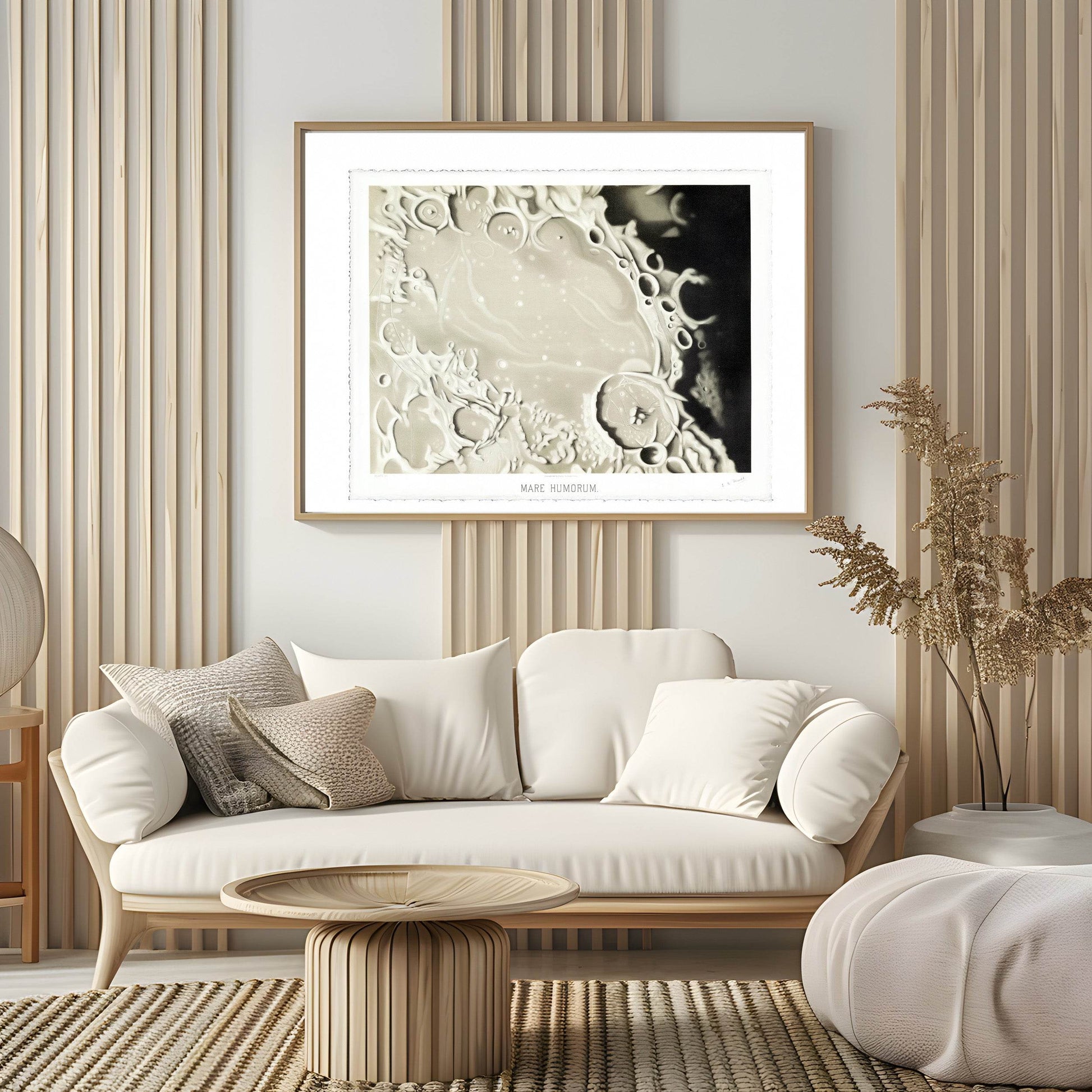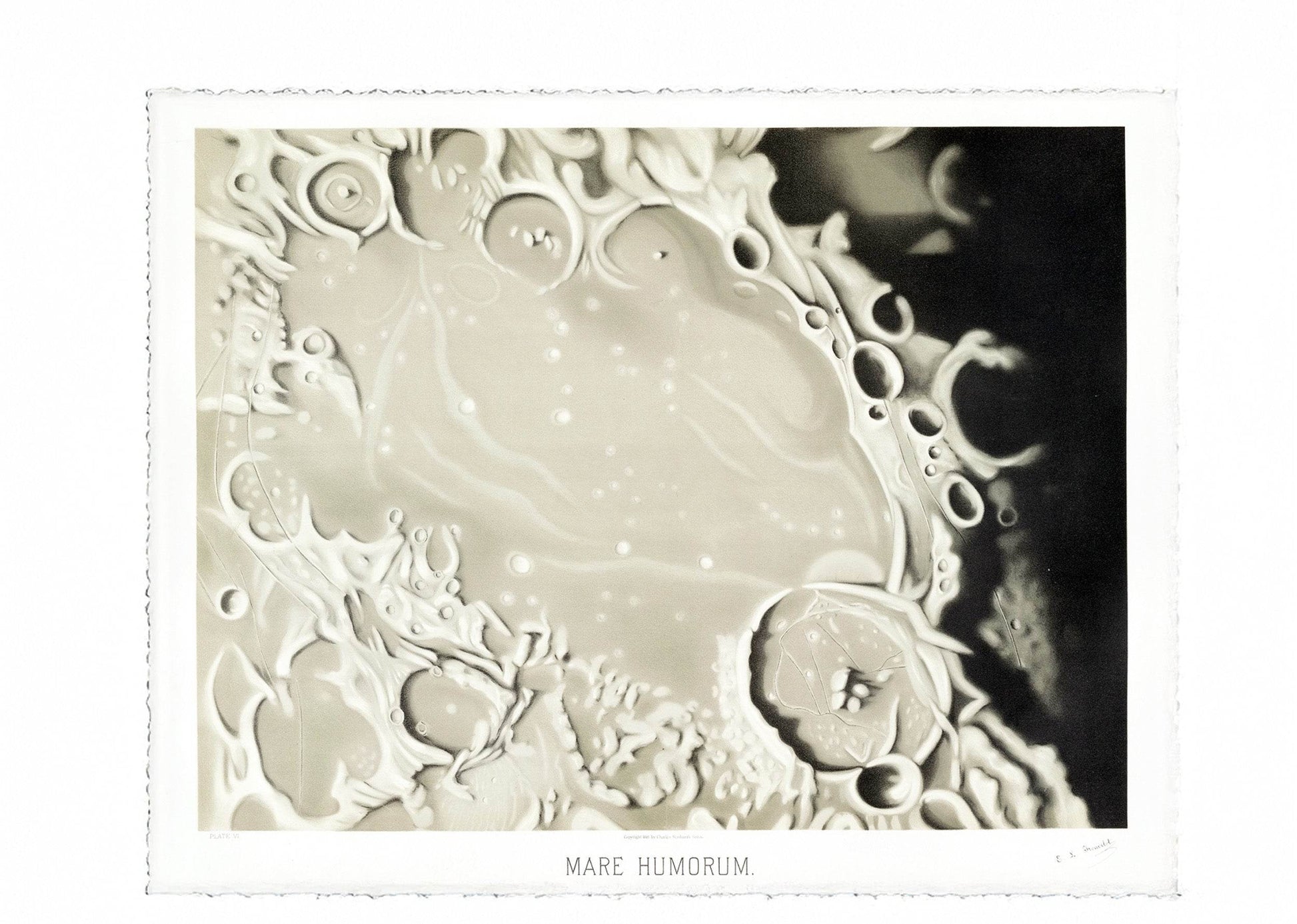 Mare Humorum is a remarkable celestial artwork created by Étienne Léopold Trouvelot in 1881. This exquisite piece captures the intricate details of the Mare Humorum, a prominent lunar mare located on the Moon's surface.
