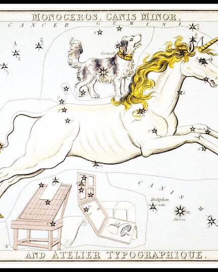 Monoceros, Canis Minor, and Atelier Typographique is a stunning collection that showcases the celestial beauty of the night sky. Featuring the exquisite works of Sidney Hall from 1825, this collection highlights the constellations of Libra and Leo Minor.