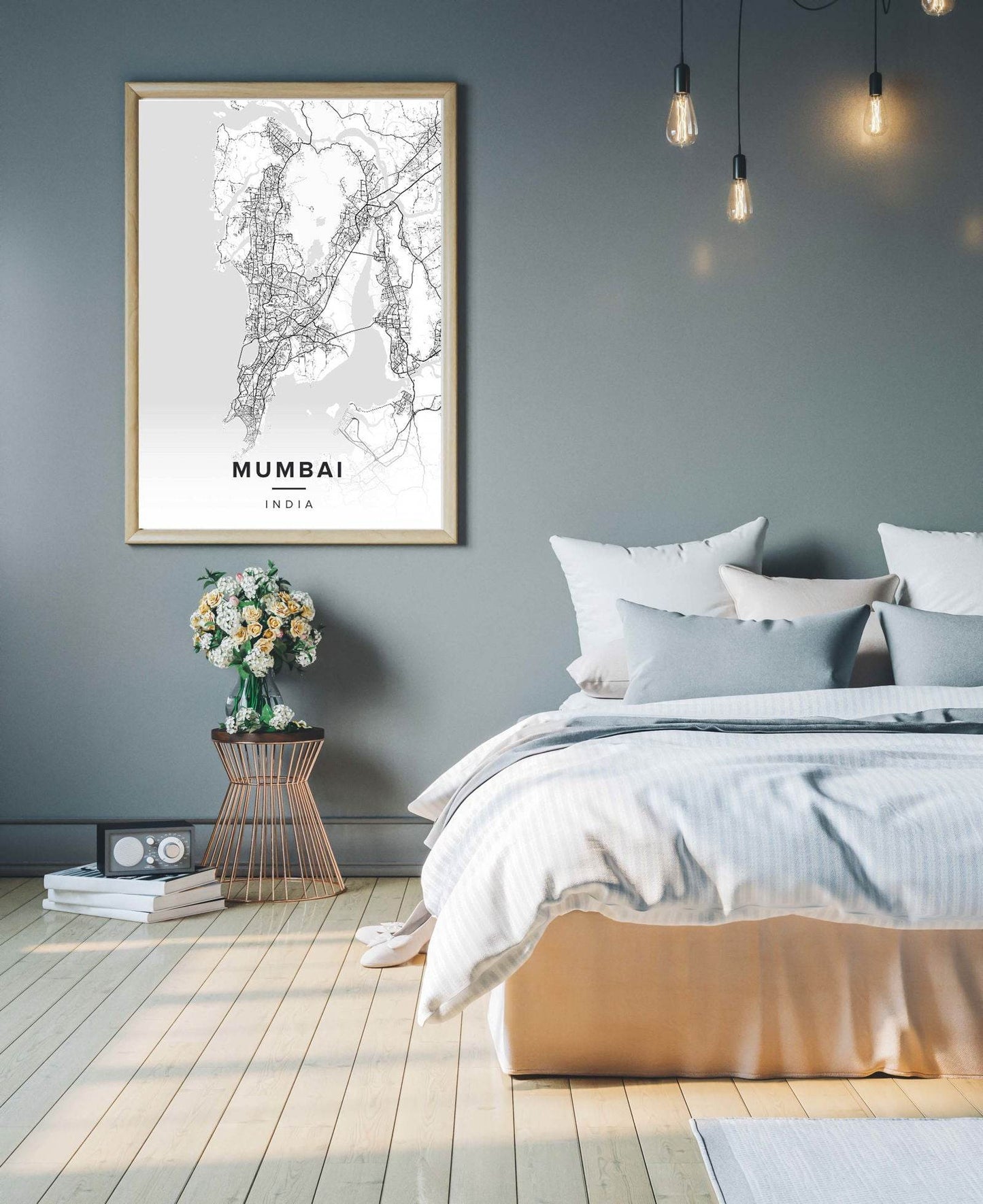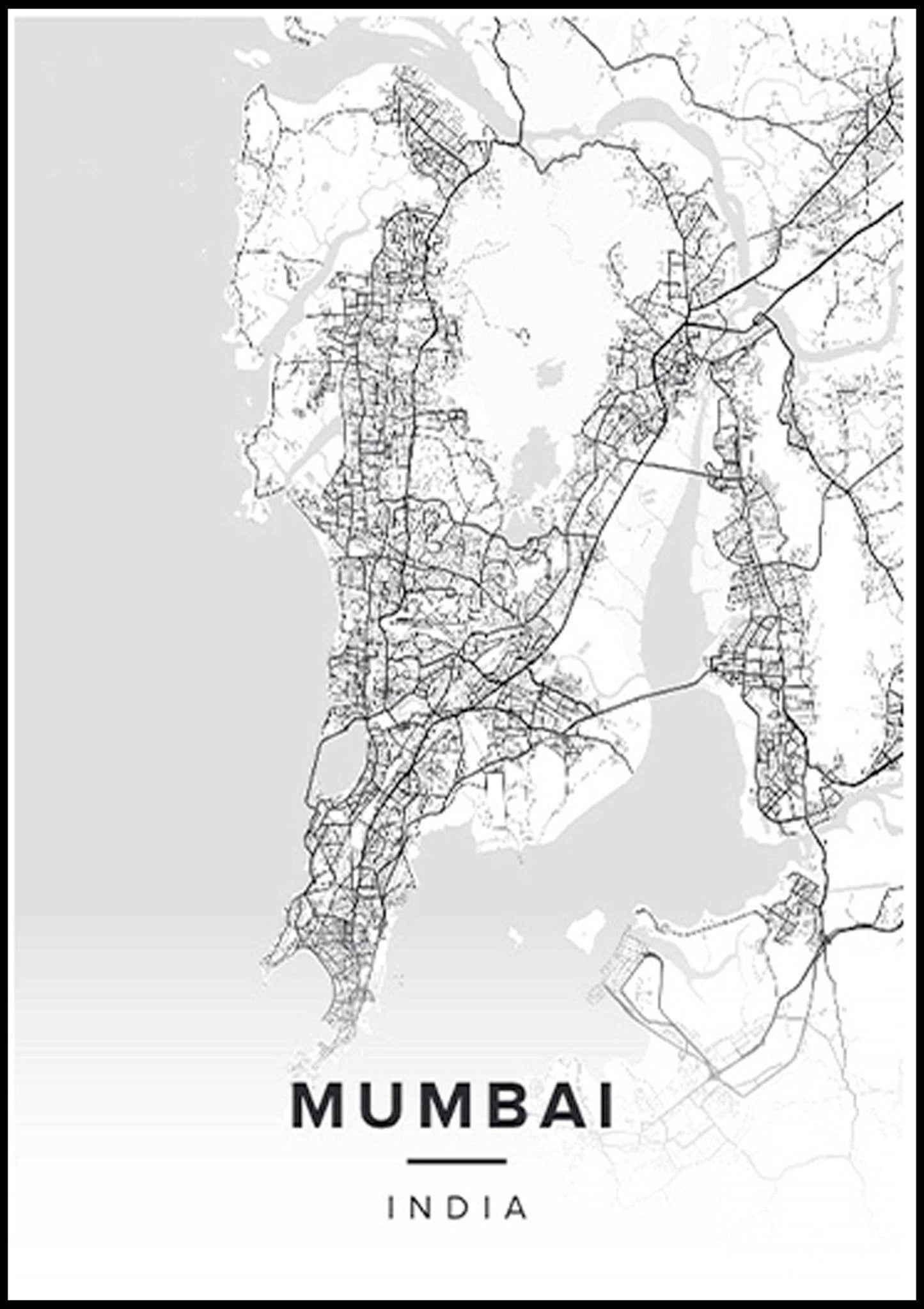 Mumbai City Map Poster – Black and White Minimalist Wall Art Print