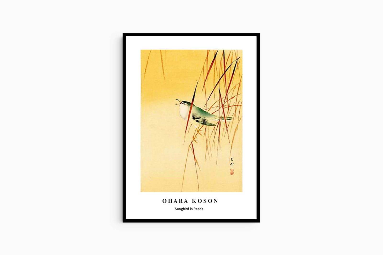 Ohara Koson - Songbird in Reeds Poster - Hakyarts