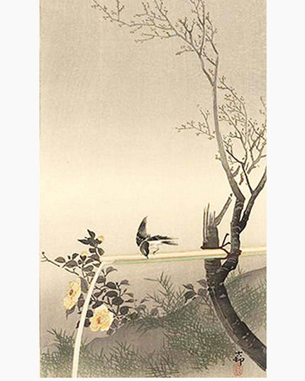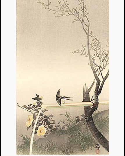 Ohara Koson - Stonechat on a Thin Stalk Poster - Hakyarts