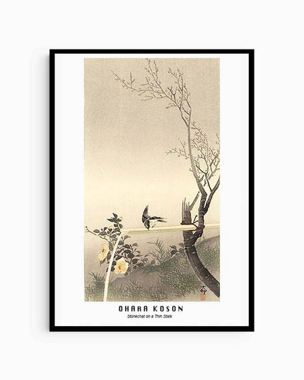 Stonechat on a Thin Stalk poster by Ohara Koson.