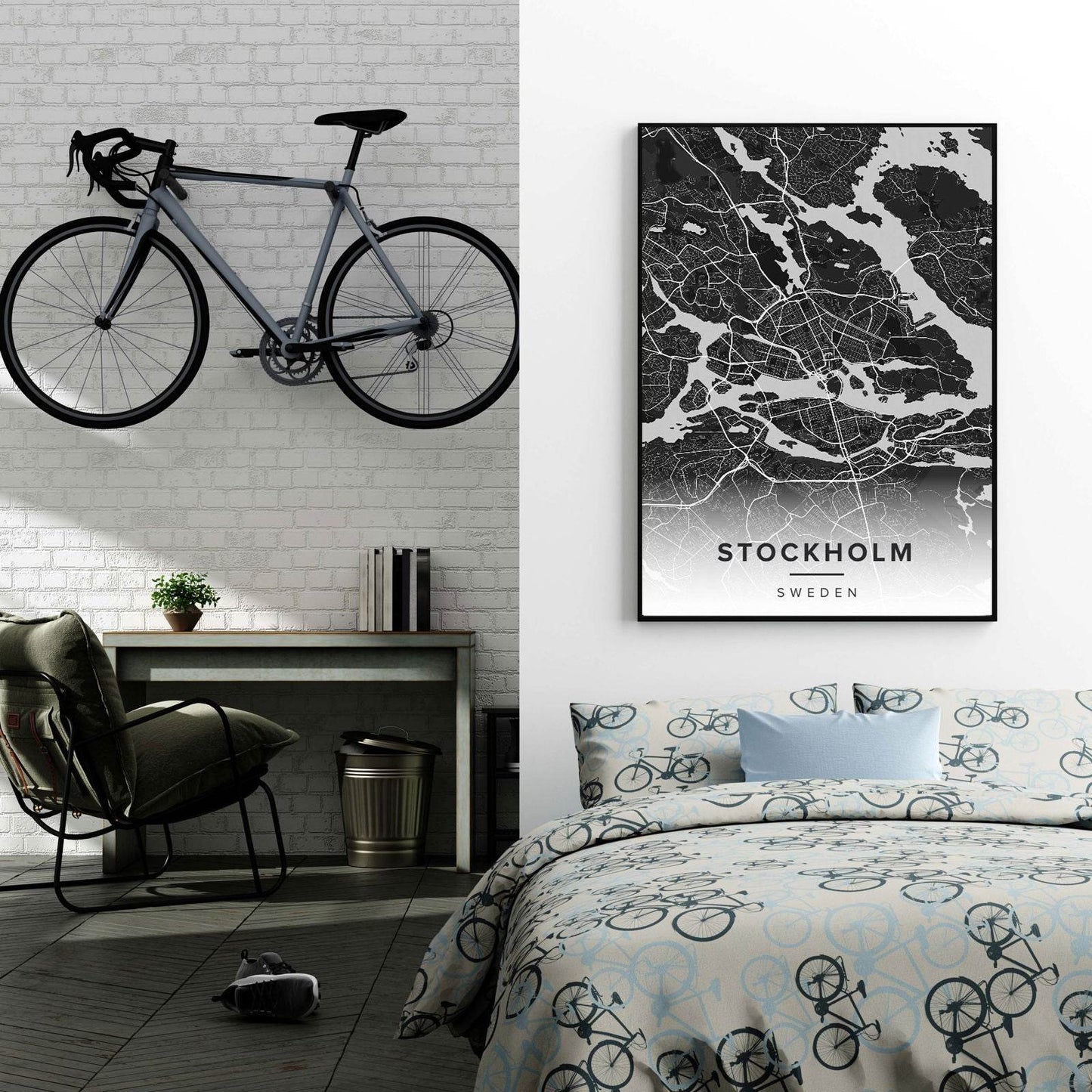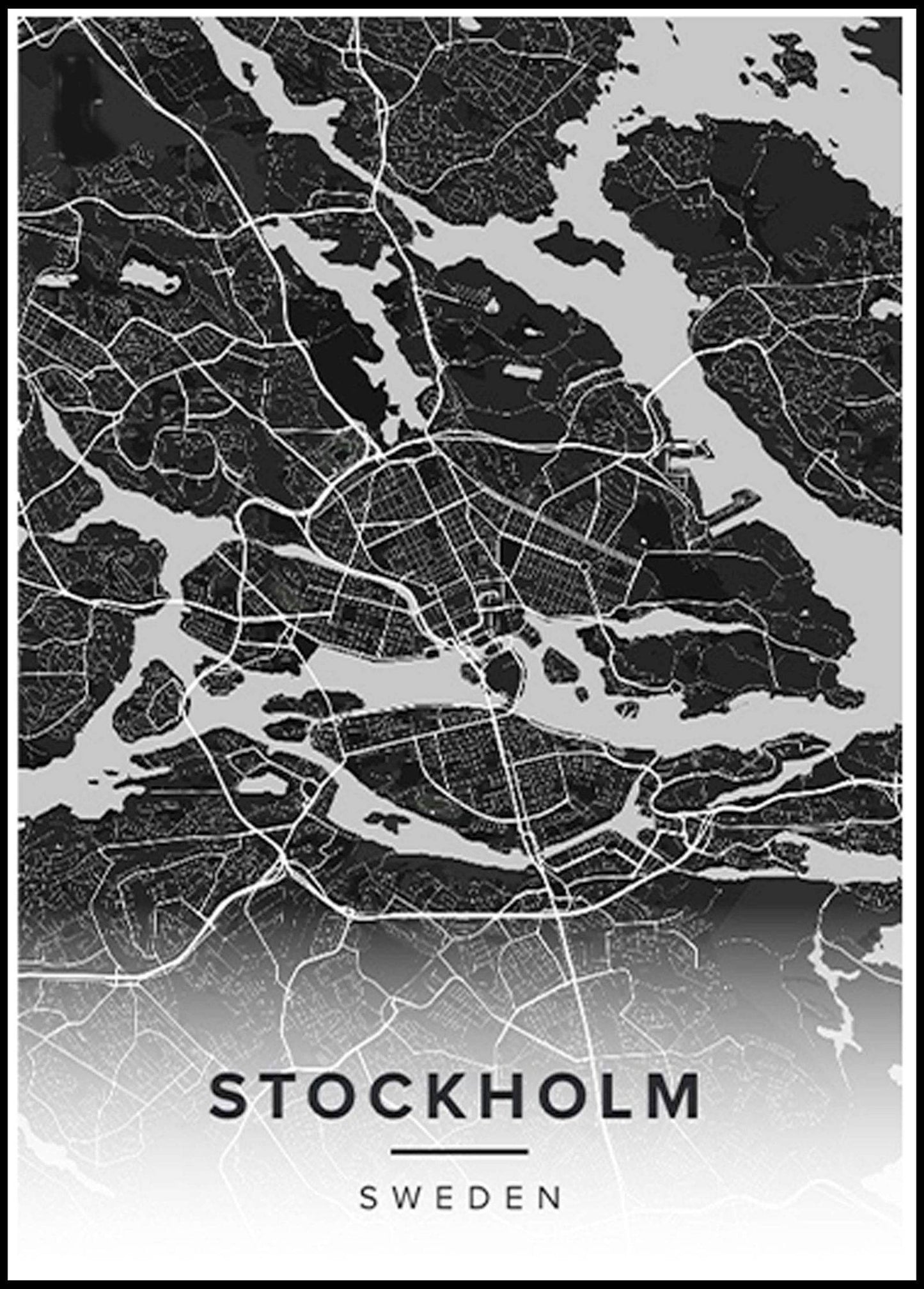 Stockholm City Map Poster – Minimalist Black & White Urban Wall Art Print