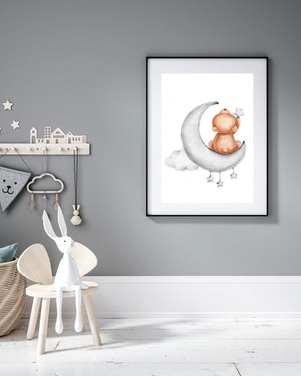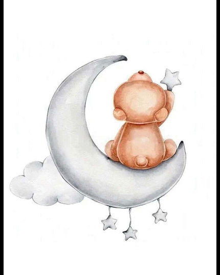 "There's a time and place for everything." -The Wizard of Oz "I'm not in the moon!" -The Wizard of Oz "The sky is the limit." -The Wizard of Oz This is a 18x24 inch poster of a teddy bear sitting on a half moon looking at the sky. This poster is a great gift for anyone who is looking for a cute and inspirational poster to add to their home.
