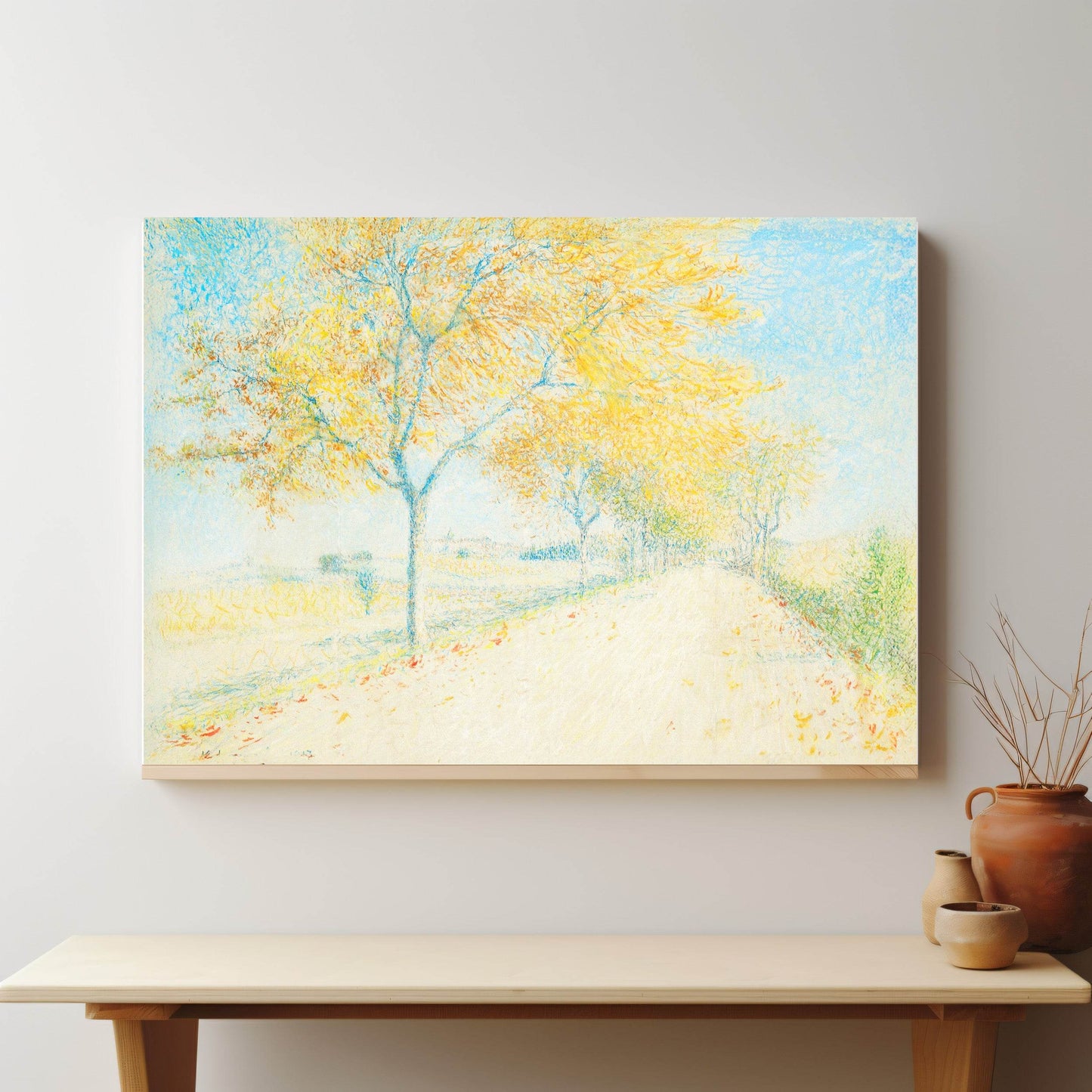 The composition balances structure and softness, evoking both serenity and vitality in the natural landscape. Perfect for admirers of Post-Impressionism, pointillism, and French rural scenes, this art print adds warmth, tranquility, and timeless beauty to any home or collection.