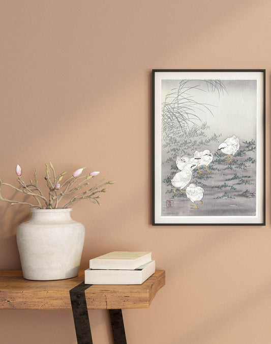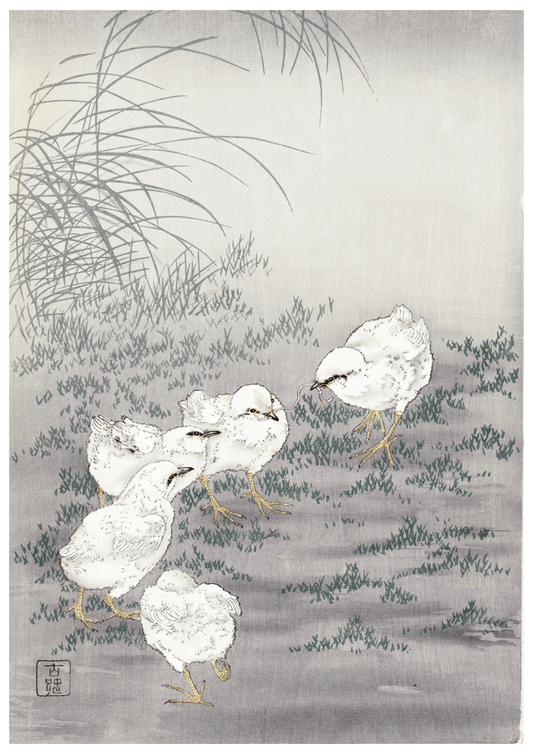 Ohara Koson – Five Chicks | Japanese Nature Art Print | Minimalist Animal Wall Art -