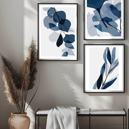 Abstract Blue Watercolour Leaves Posters Trio Pack