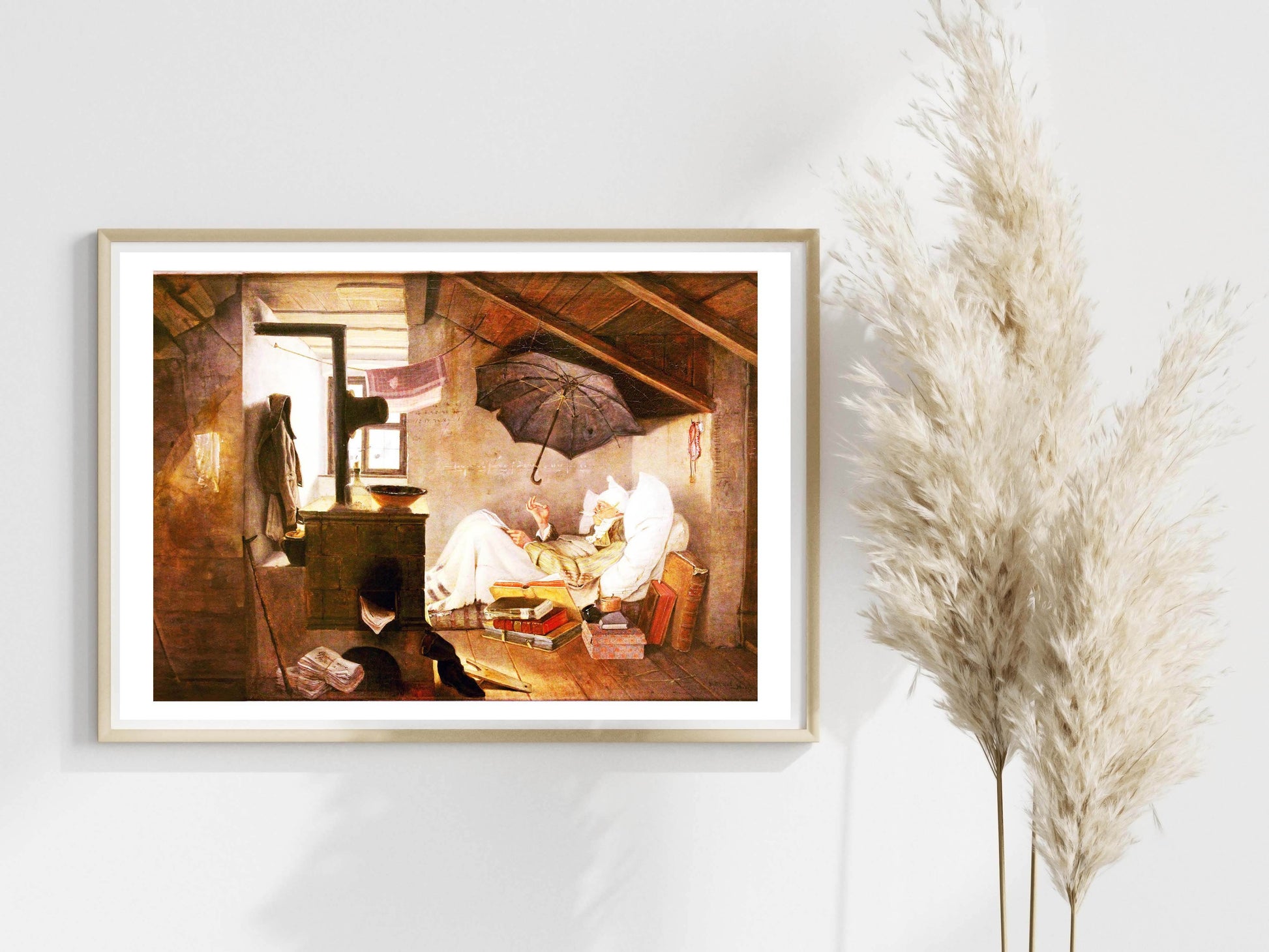 With sharp wit and warm detail, Spitzweg captures both the struggles and the quiet dignity of the artist’s life, offering a timeless reflection on creativity and poverty. Perfect for admirers of Romantic art and narrative painting, this art print adds charm, character, and a touch of historical humor to any interior.