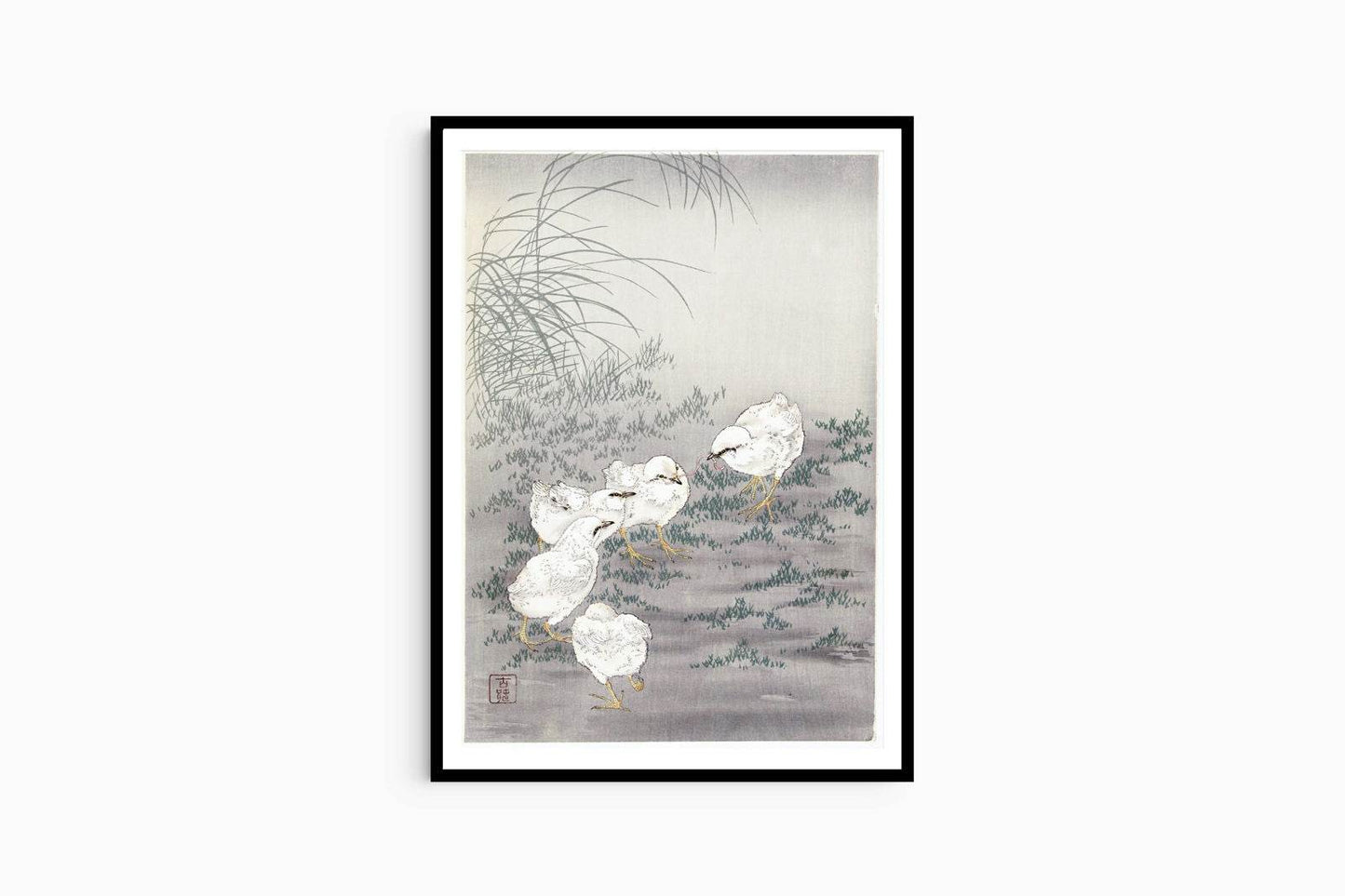 Ohara Koson – Five Chicks | Japanese Nature Art Print | Minimalist Animal Wall Art